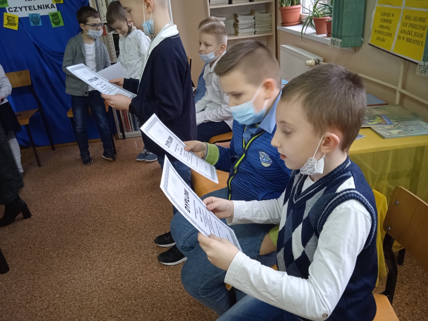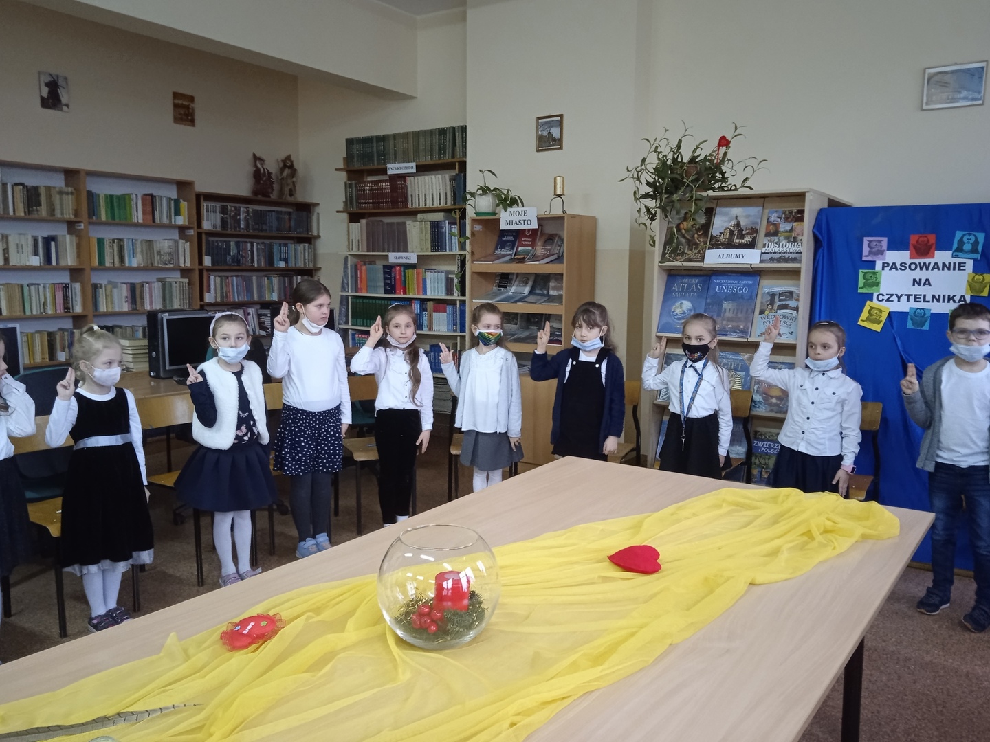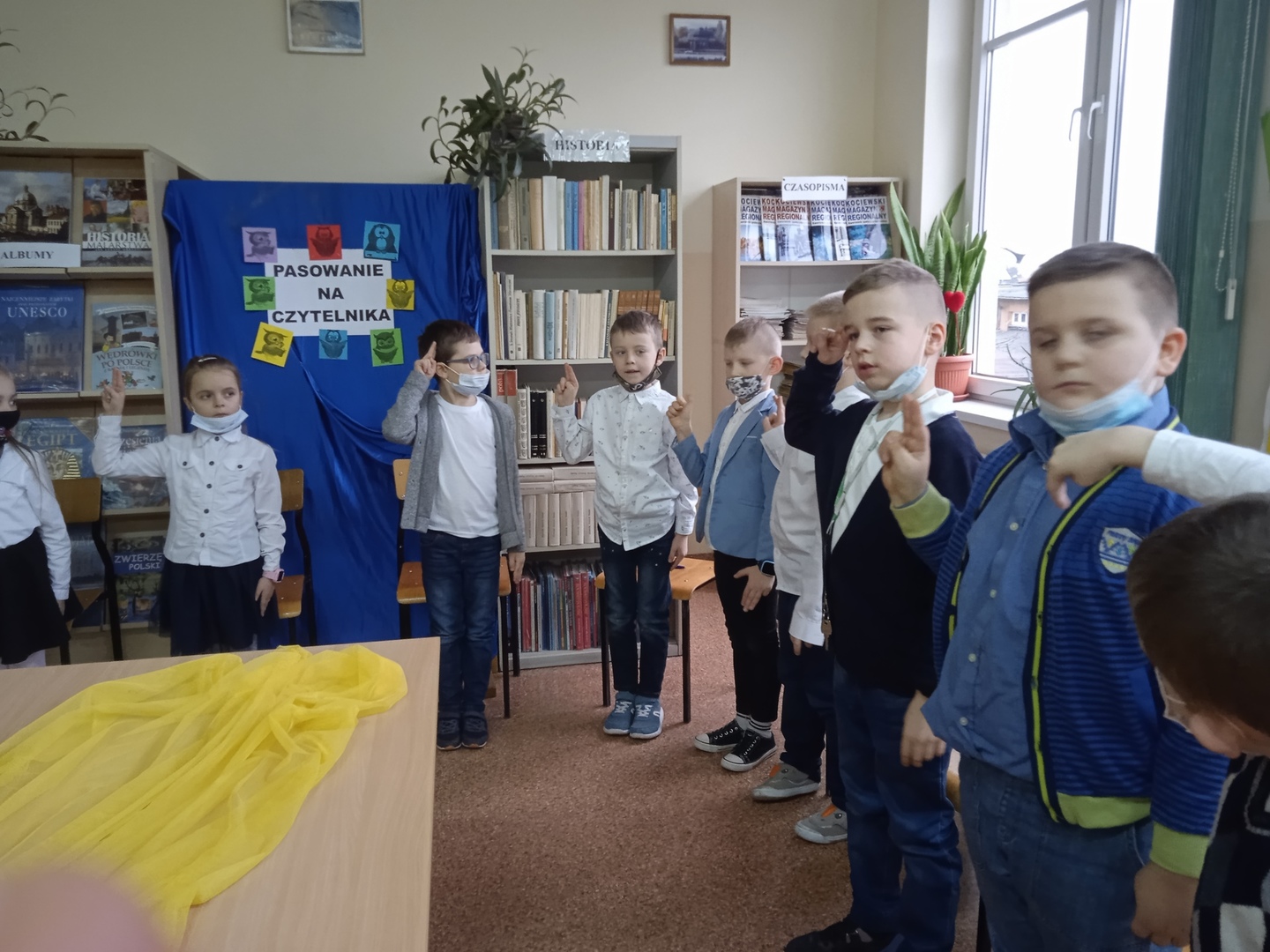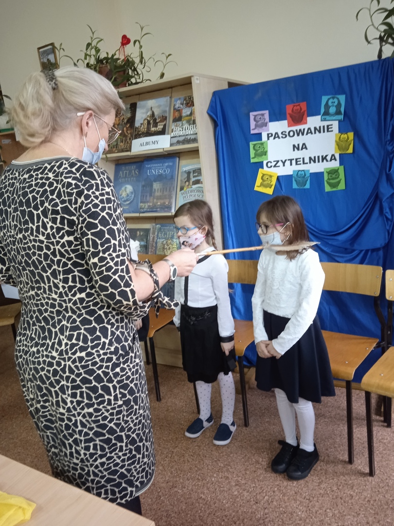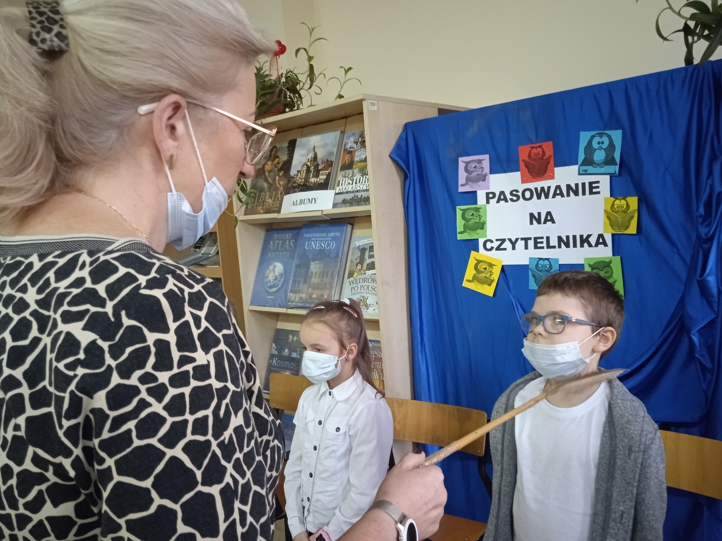 Po serii lekcji bibliotecznych i zdaniu egzaminu pierwszaki zostali dopuszczeni przez panią Zdzisię Mszanowską do pasowania.