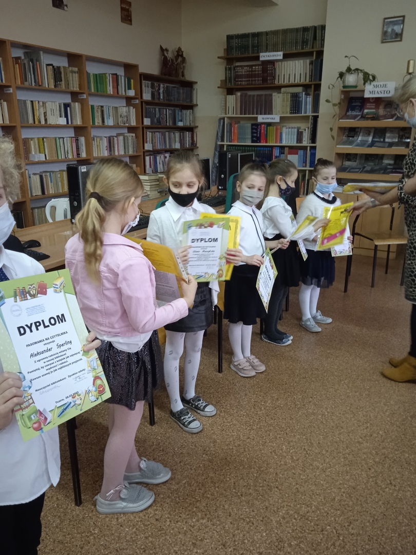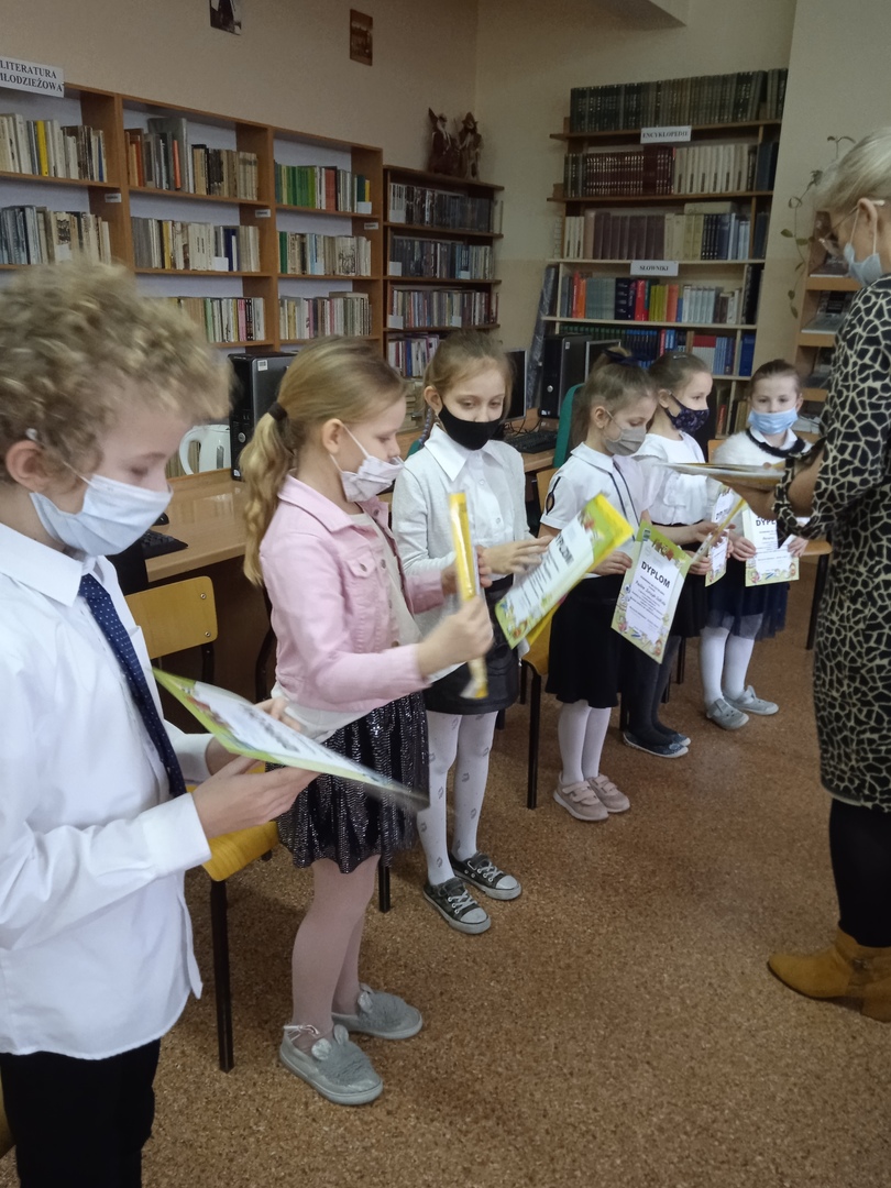 Uczniowie odpowiadali na różne pytania, wykazali się wiedzą w dziedzinie bajek i baśni, świetnie poradzili sobie z zasadami zachowania w bibliotece i znajomością regulaminów. Wiedzą także, jak dbać o książki.