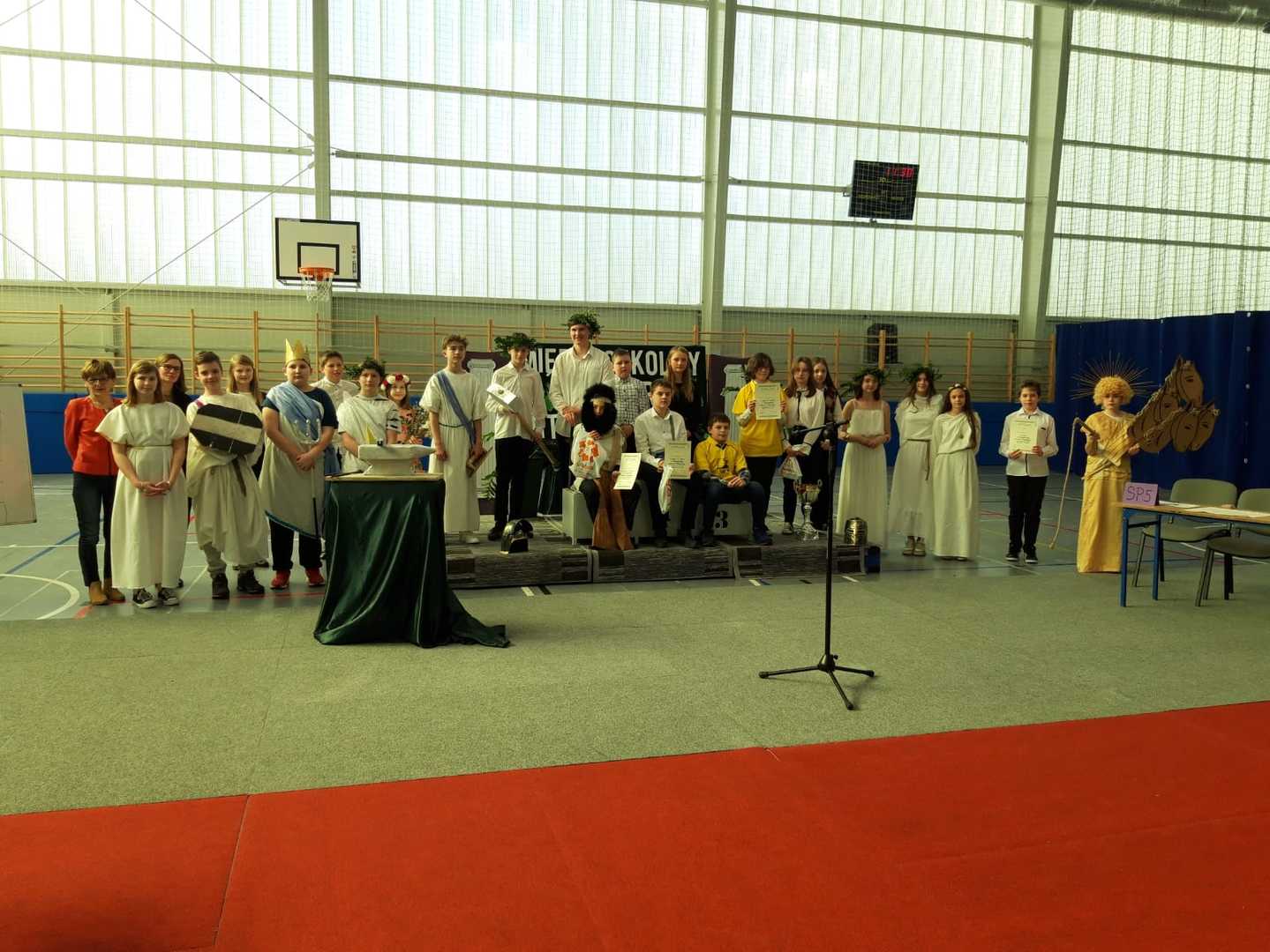 28 marca przedstawiciele klas piątych: Karolina Marchel, Filip Knieć i Dominik Wojtanowski wzięli udział w I Międzyszkolnym Konkursie Mitologicznym zorganizowanym przez SP 8 w Tczewie. Nasi uczniowie nie zajęli czołowych miejsc, ale i tak popisali się dużą wiedzą i wypadli znakomicie, zwłaszcza Filip, który wcielił się w boga słońca Heliosa.