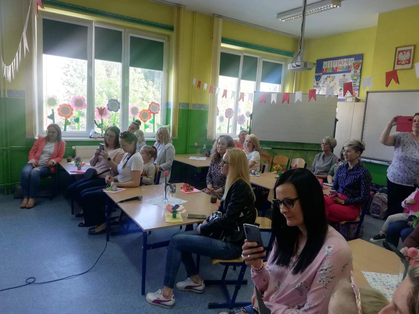 W poniedziałek 23 maja w naszej szkole odbyła się uroczystość z okazji Dnia Matki, którą przygotowała klasa 1a. Na zaproszenie dzieci przybyli do szkoły niezwykli goście – Mamusie, które eleganckie i dumne z radością czekały na ten dzień. Odświętnie ubrane dzieci wyrażały miłość i wdzięczność swoim drogim Mamusiom poprzez występy artystyczne. Były wierszyki, piosenki oraz życzenia. Publiczność była zachwycona popisami dzieci, na twarzach zebranych gości malowało się wzruszenie, ale także duma ze swoich zdolnych pociech.