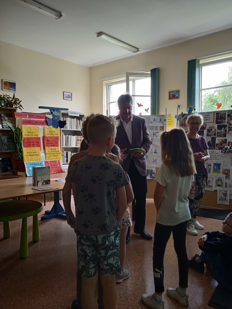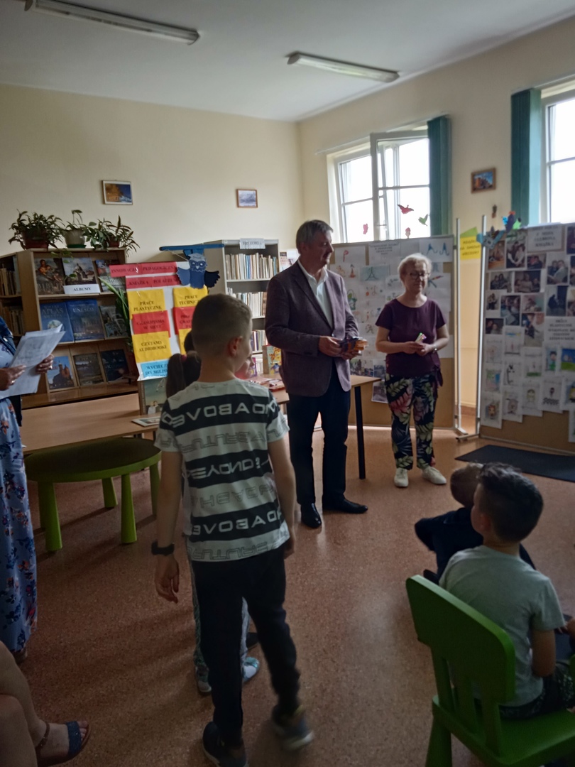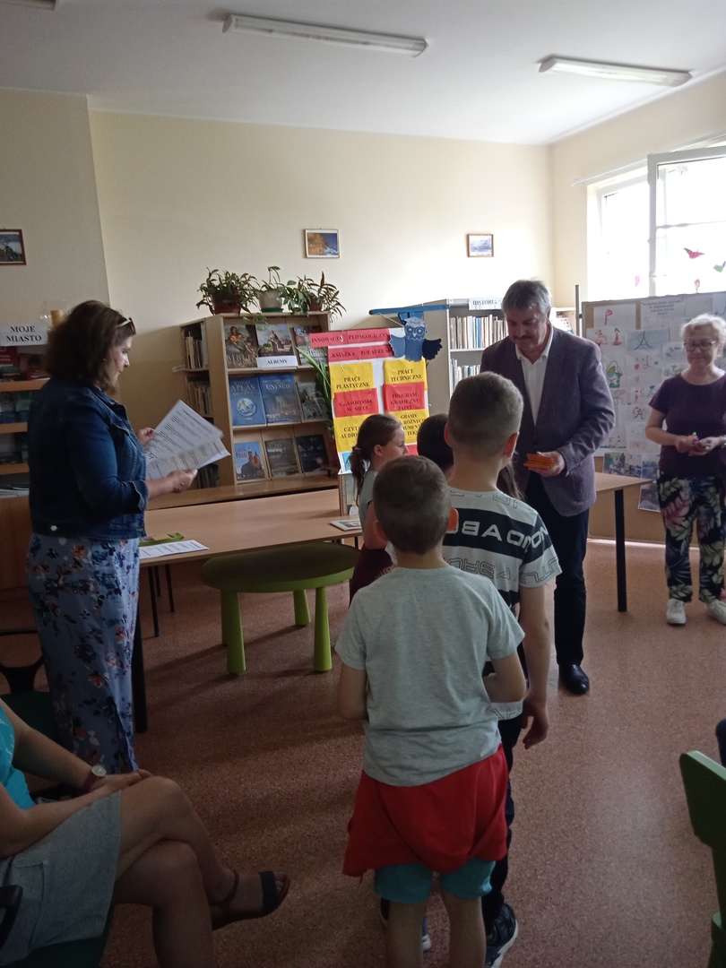 Na zakończenie Innowacji pedagogicznej pan dyrektor wręczył nagrody zwycięzcom w “Podchodach czytelniczych” oraz nagrody i dyplomy “Najlepiej czytającej klasie” i najlepszym czytelnikom w klasach pierwszych.