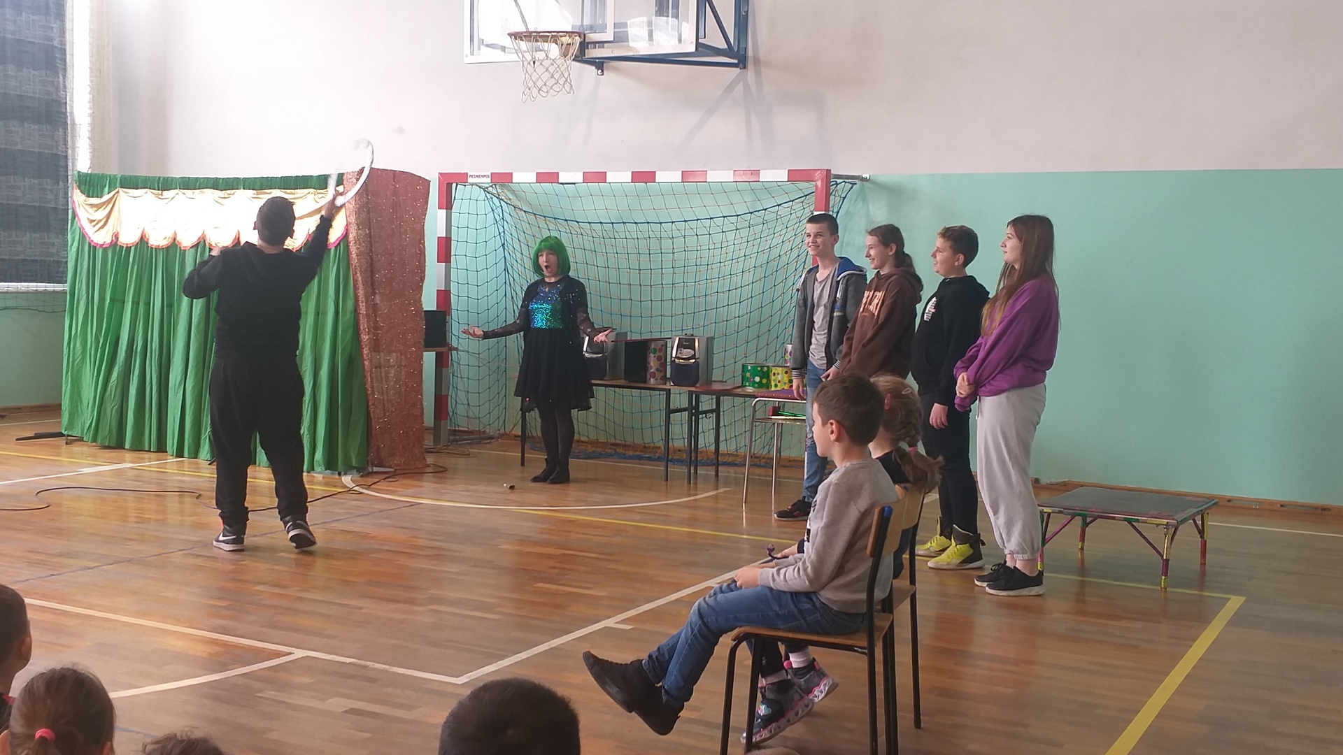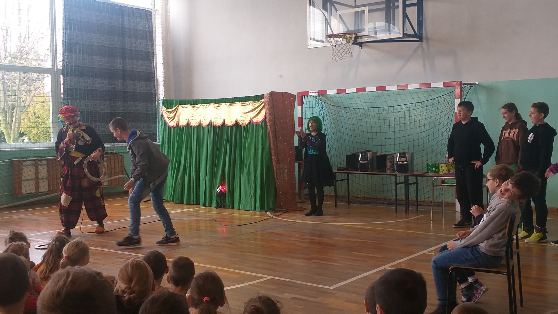 W dniu 18 listopada gościła w naszej szkole grupa cyrkowa, która zabawiała naszych uczniów różnymi sztuczkami, akrobacjami, żonglerką i zabawnymi inscenizacjami. Dzieciaki mogły również spróbować swoich umiejętności cyrkowych.