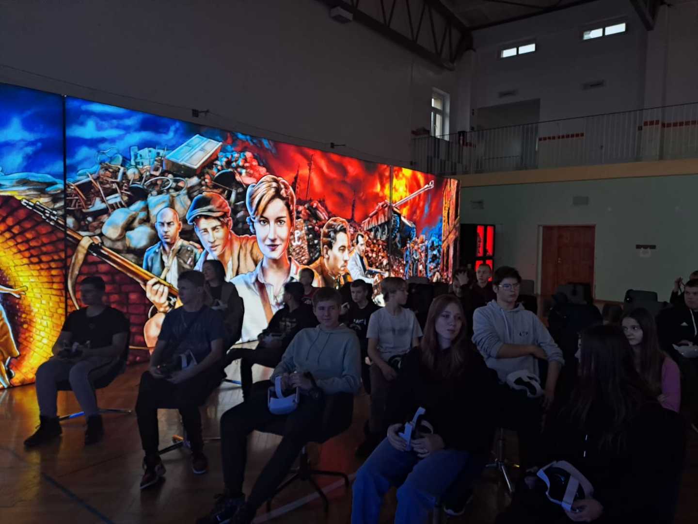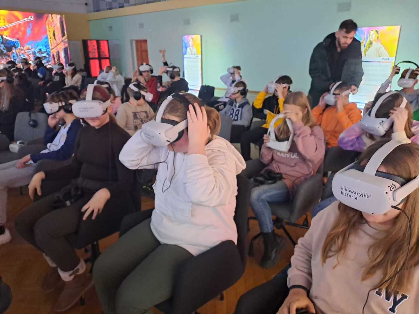 Dnia 28 listopada klasy 8 i 7 wzięły udział w projekcie "Innowacja historyczna - nowe technologie w służbie edukacji". Pokazał składał się z projekcji dwóch filmów historycznych "Kartka z Powstania (Powstanie Warszawskie) oraz "Wiktoria 1920" (wojna polsko-bolszewicka). Oba seanse odbyły się w technologii wirtualnej rzeczywistości.