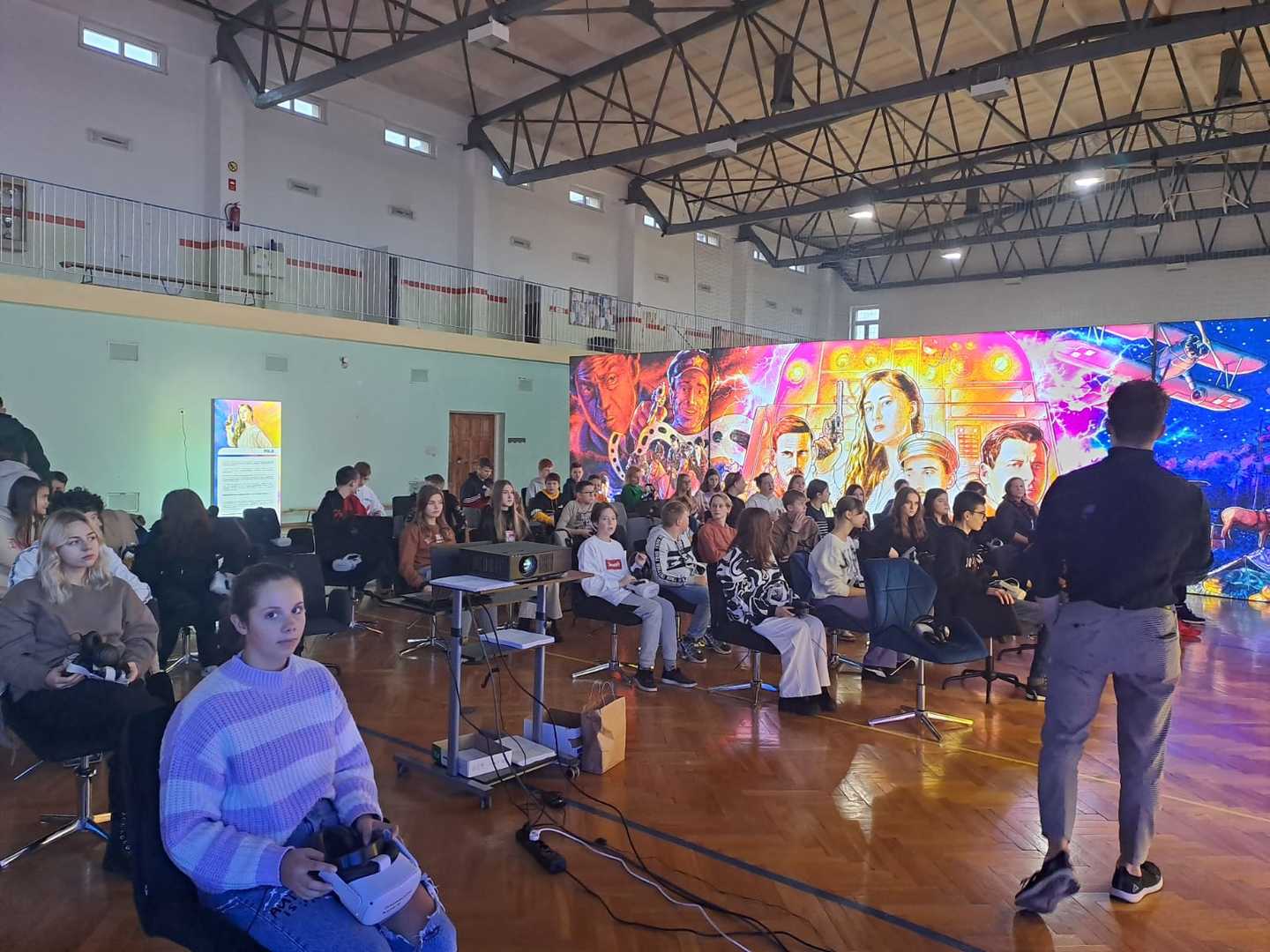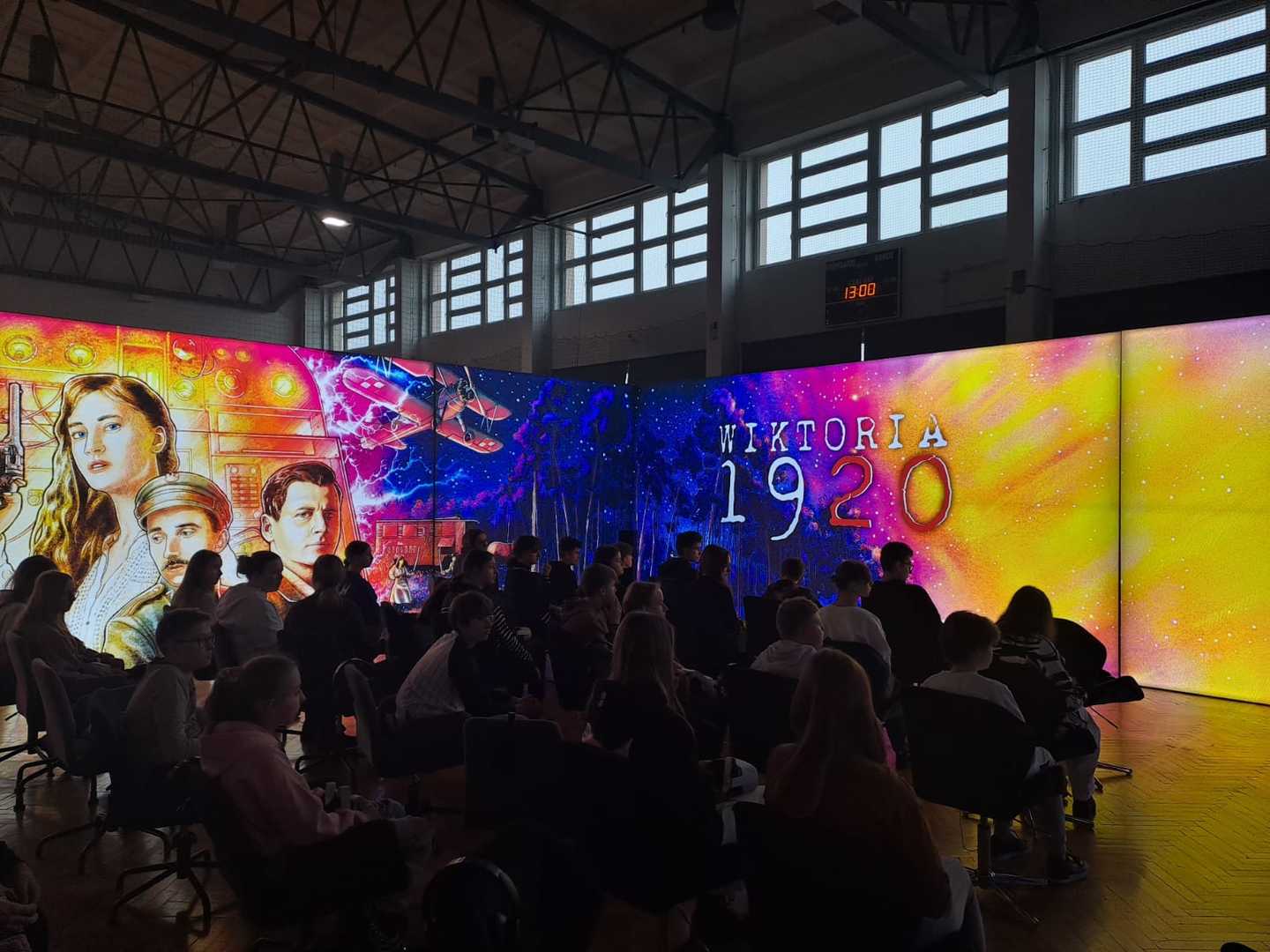 W sali gimnastycznej SP12 zbudowana została specjalna scenografia przystosowana do pokazu. Każdy seans poprzedzony był krótkim wstępem wprowadzającym młodzież w tematykę związaną z filmem. Uczniowie otrzymali gogle VR oraz instrukcje ich użytkowania.