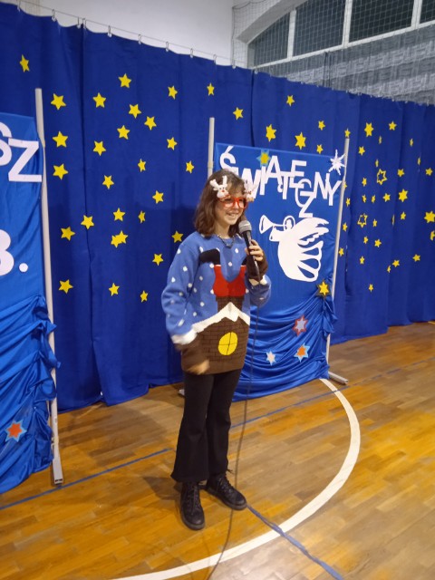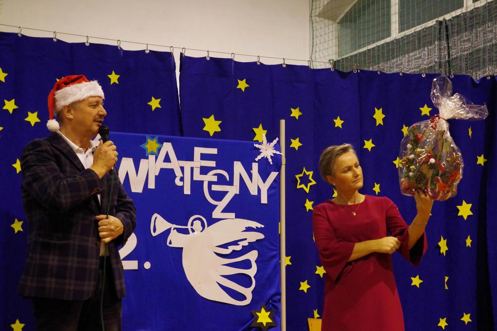 A między występami kolejnych klas odbywała się aukcja świątecznych ozdób, którą prowadził pan dyrektor Jan Kur.