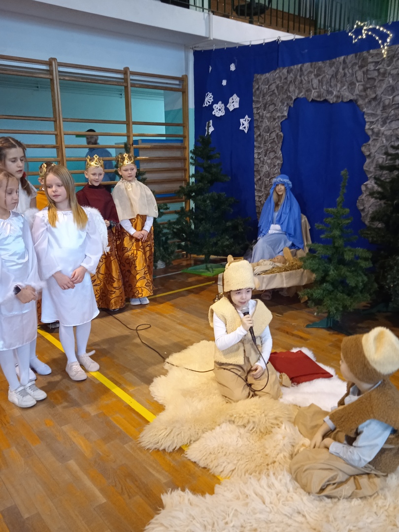W ostatni dzień w szkole, przed przerwą świąteczną, na sali gimnastycznej odbyły się Jasełka Bożonarodzeniowe.