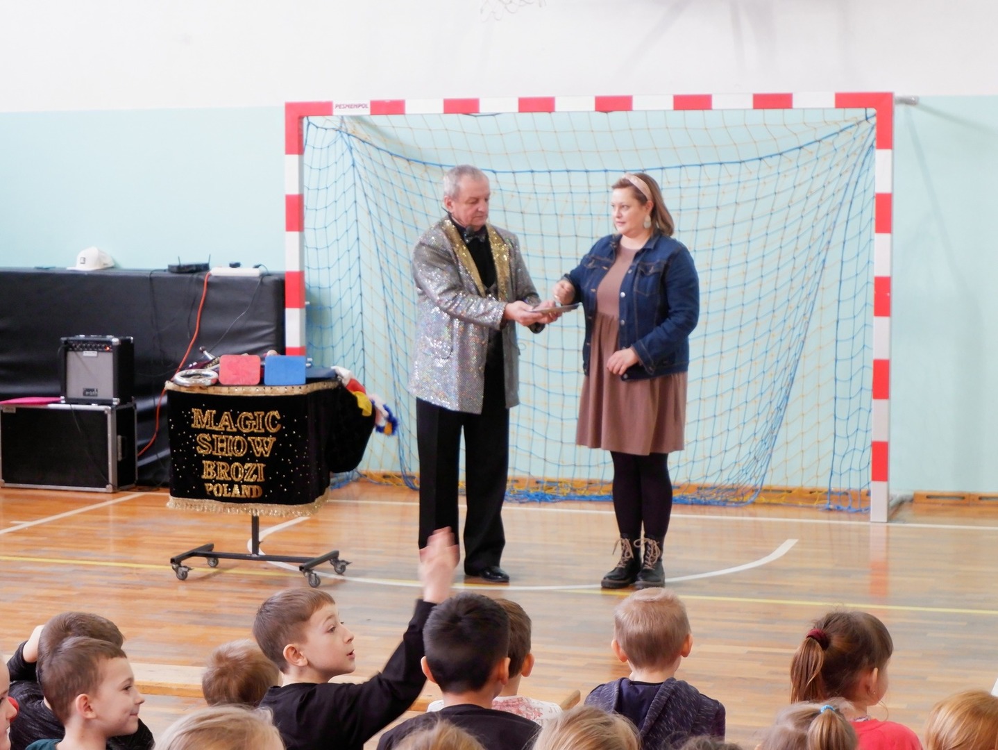 Niesamowite triki z pojawiającymi się i znikającymi gołębiami to tylko część wspaniałego pokazu. W roli asystentów świetnie sprawdzili się nasi uczniowie oraz pani Monika.