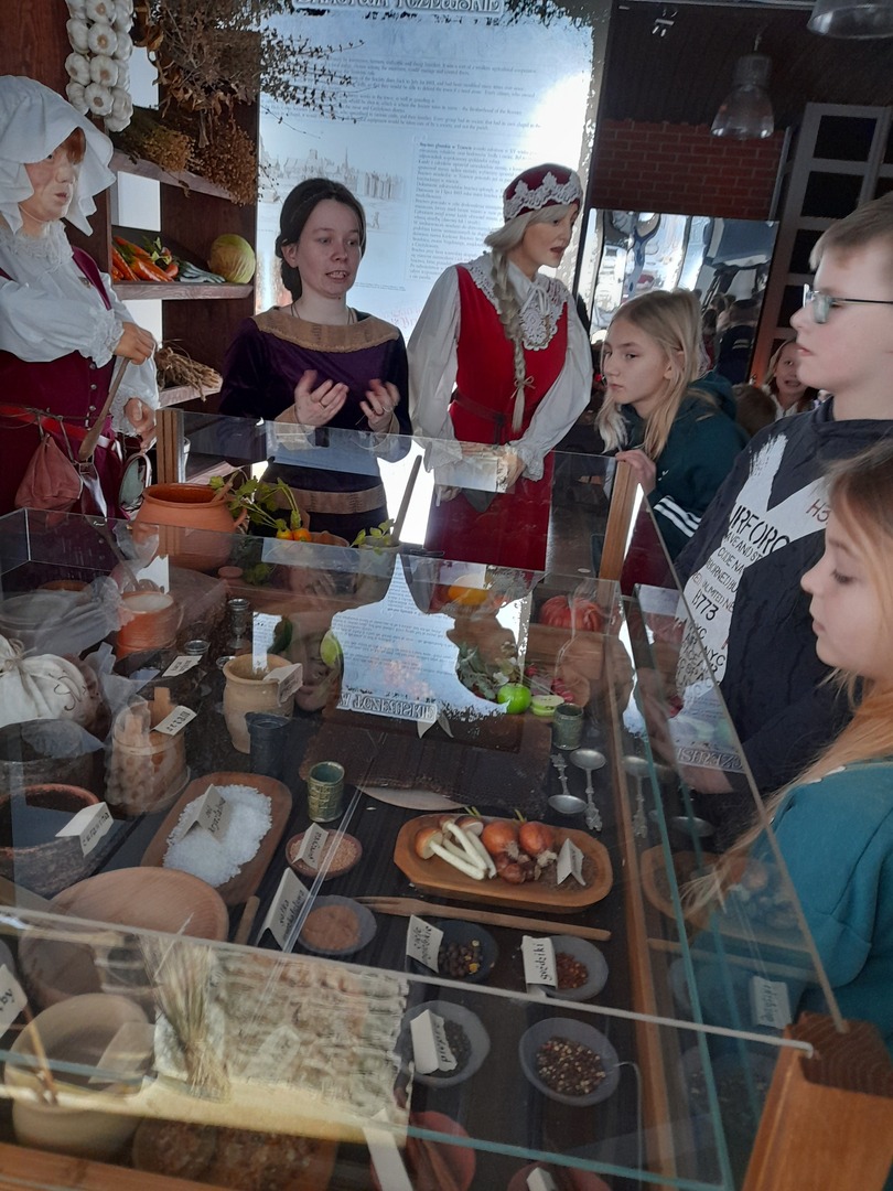 Oglądając wystawę w części muzealnej uczniowie mogli zobaczyć, jak wyglądał XVI- wieczny Tczew. Były przedstawione m.in. stroje z epoki, dokumenty, jedzenie czy naczynia. Przybliżone zostały także postacie Aleksandra Skulteta, patrona tczewskiej książnicy, oraz Mikołaja Kopernika.