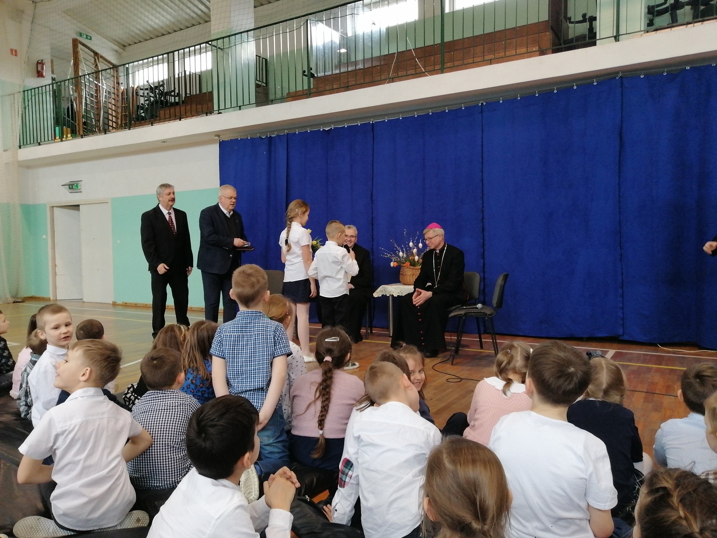 Dnia 27 marca (w ramach wizytacji parafii pw. św. Maksymiliana Kolbego w Tczewie) odwiedził naszą szkołę ks. biskup Arkadiusz Okroj.