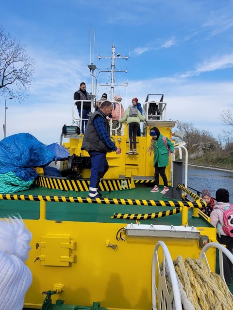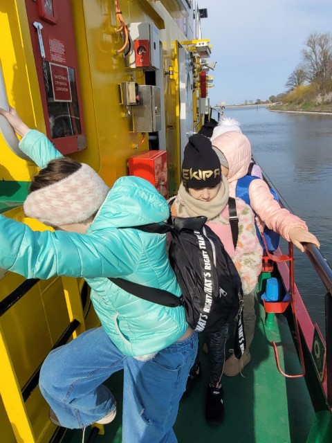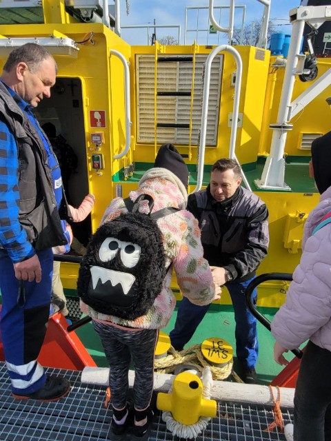 Uczniowie zwiedzili kilka lodołamaczy - dowiedzieli się o pracy ludzi na lodołamaczach, zwiedzili pomieszczenia maszynowni ale także kajut mieszkalnych dla pracowników.