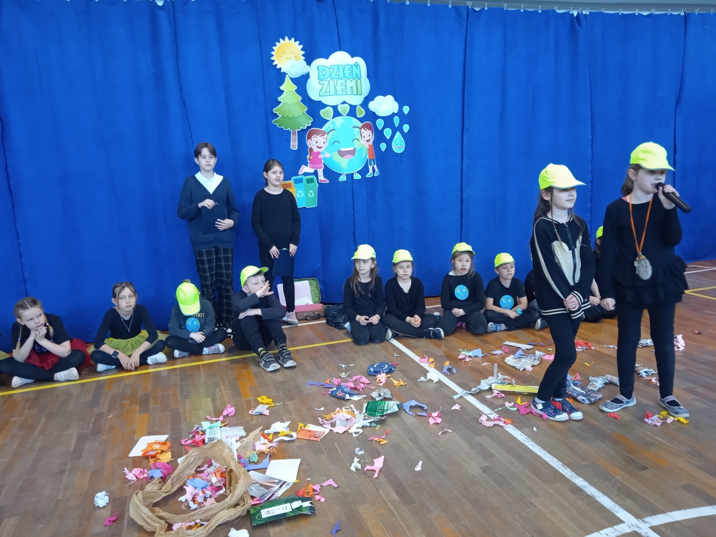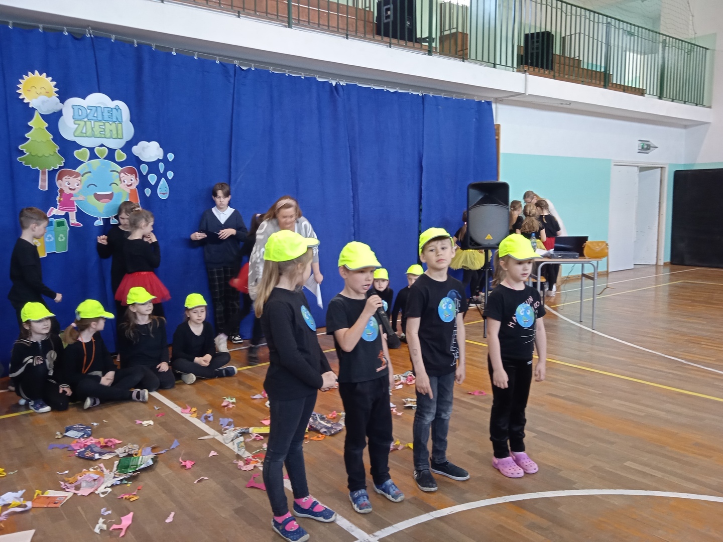 Dnia 27 kwietnia klasy 2a, 2b, OPA oraz przedstawiciele klasy 8b Zuzanna Daniel i Szymon Podjacki przedstawili na sali gimnastycznej apel z okazji Dnia Ziemi. Najpierw były wiersze, piosenki, a potem krótka inscenizacja. Podczas występów świetnie zaprezentowała się również Pola Wesierski z 2b z wiosenną muzyką, która płynęła z instrumentu, na którym Pola się uczy, czyli klarnetu. Cały występ był bardzo pouczający i piękny. Na koniec był również wspaniały taniec z szarfami “Kwiat” w wykonaniu uczniów z klas 2a i 2b. Całą uroczystość przygotowały Pani Monika Podjacka, Pani Małgorzata Kubik, Pani Katarzyna Bielawa oraz Pani Halina Tomaszewska.