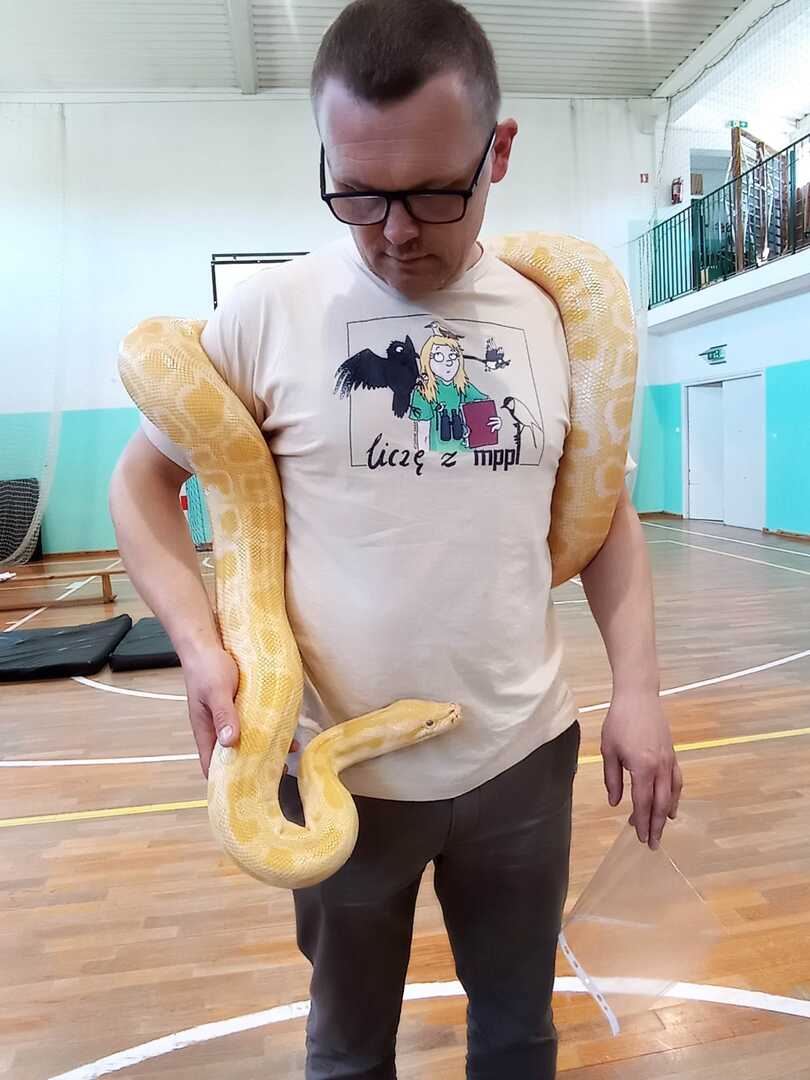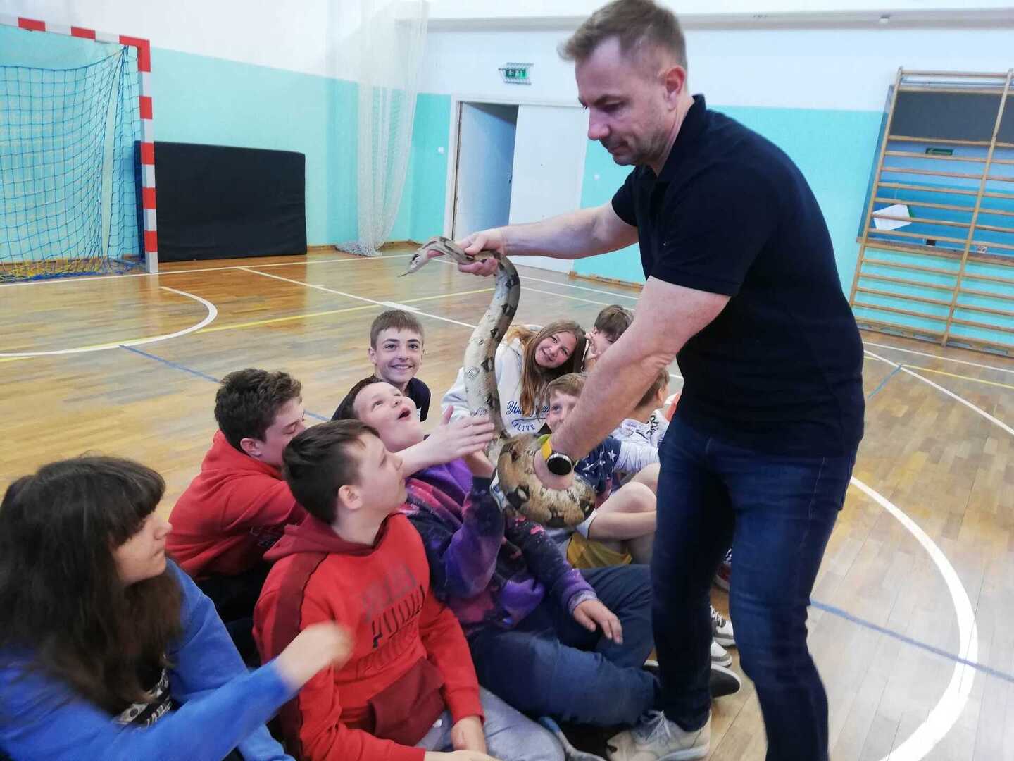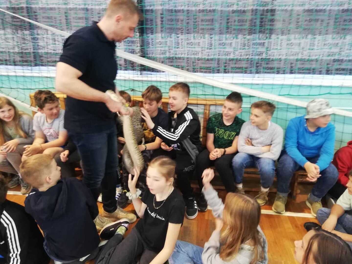 W zeszłym tygodniu, na zaproszenie p. Cezarego Wójcik, gościliśmy w naszej szkole pasjonata gadów. Uczniowie uczestniczyli w żywej lekcji przyrody pt. „Życie i hodowla gadów”.