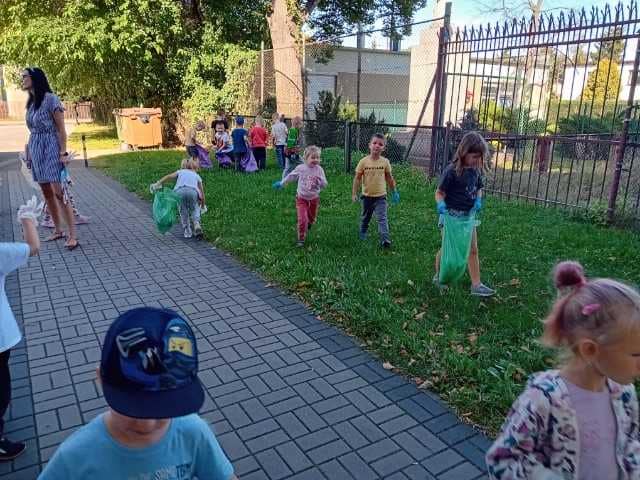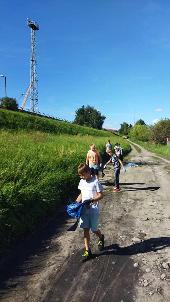 Sprzątamy nasze osiedle, tereny nad Wisłą, wały a “maluchy” sprzątają teren wokół szkoły.