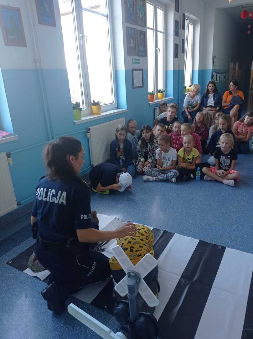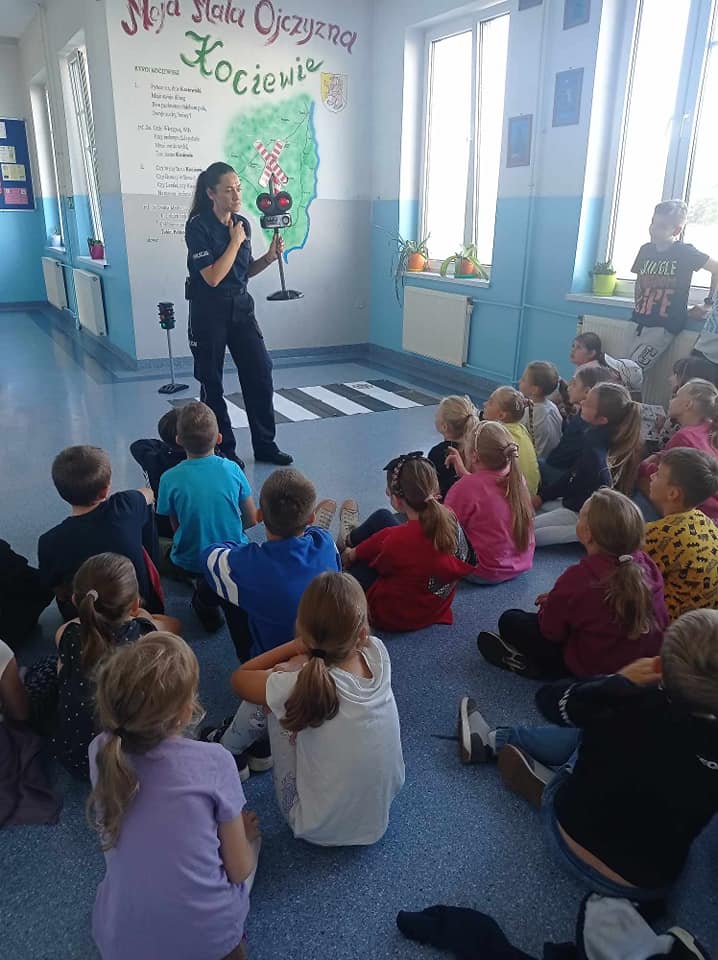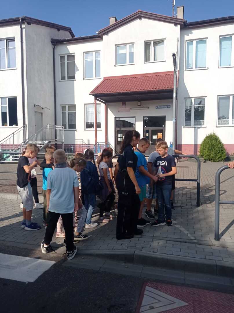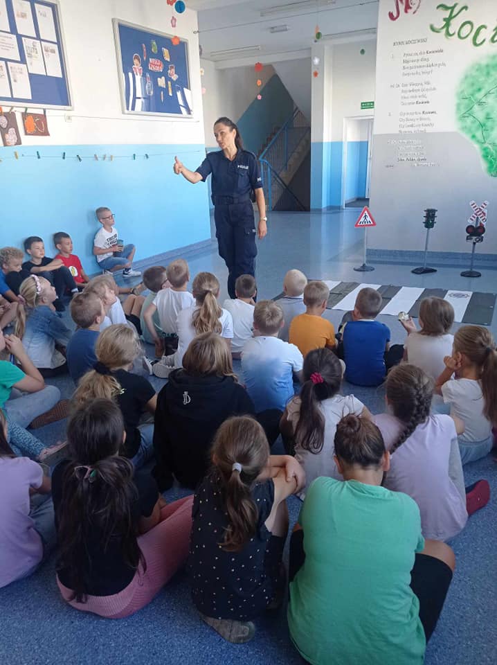 27 września 2023 roku - przy współpracy pedagoga szkolnego z funkcjonariuszem KPP w Tczewie, panią Wioletą Maras-Dudyńską - odbyło się spotkanie dla uczniów klas I - III i dzieci przebywających na zajęciach w świetlicy szkolnej.