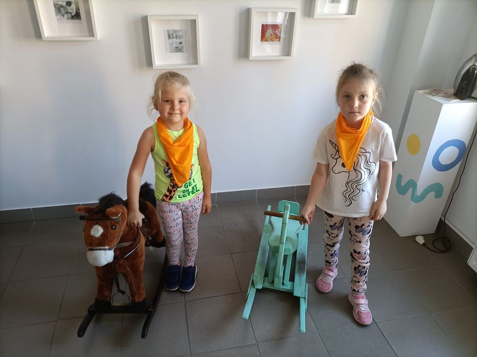Konie na kiju i na biegunach, bajka wyświetlana z diaskopu, gra w kapsle i w klasy, stary telefon wzbudziły duże zainteresowanie dzieci.