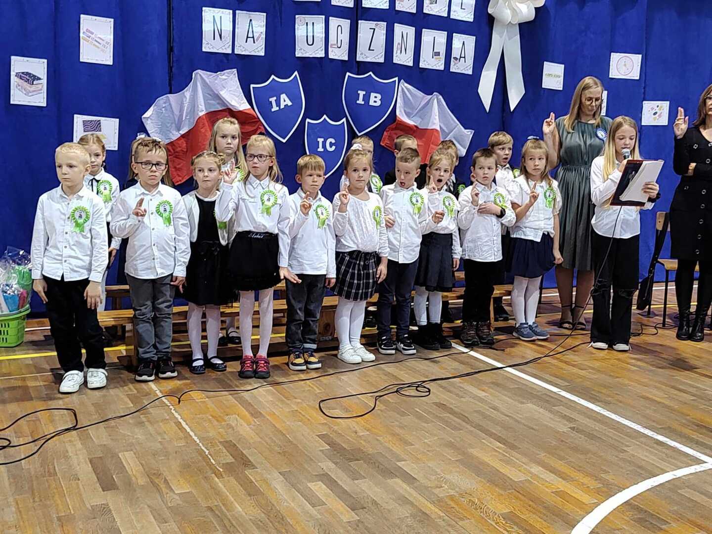 Najpierw pierwszaki zaprezentowali część artystyczną, a następnie złożyli ślubowanie na sztandar zgodnie z Ceremoniałem Szkoły Podstawowej nr 7 im. Stanisława Staszica w Tczewie. Następnie pan dyrektor Jan Kur Pasował wszystkich na uczniów naszej szkoły.