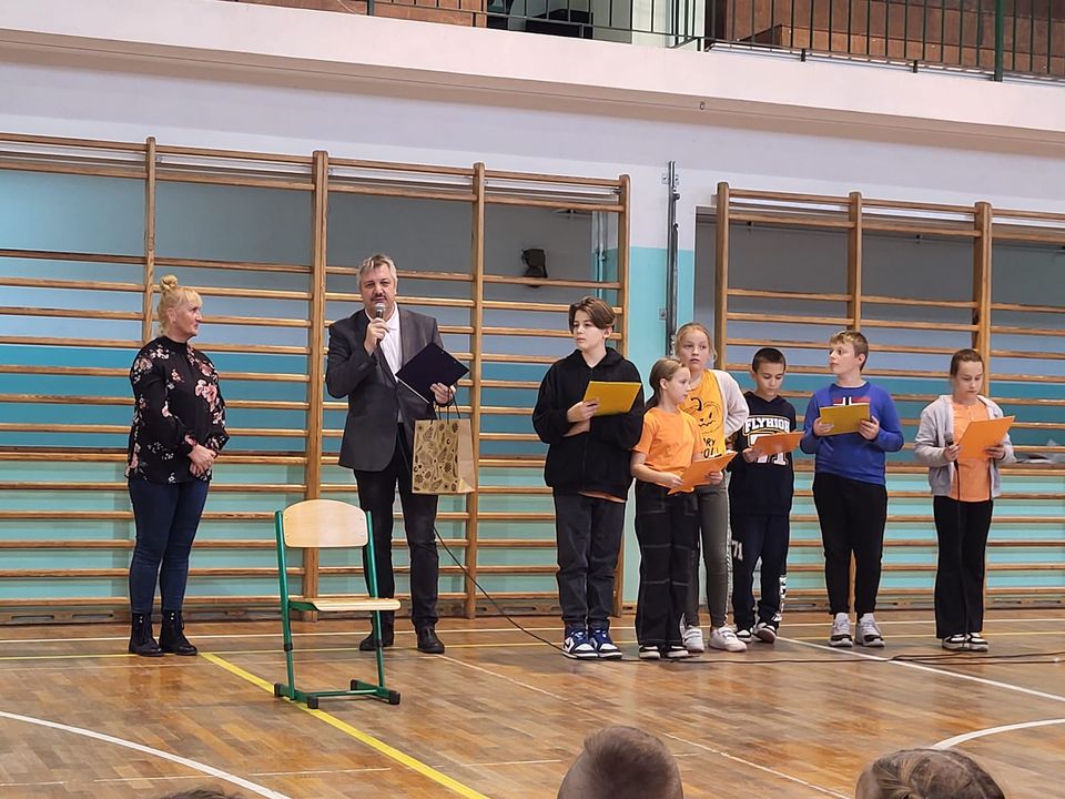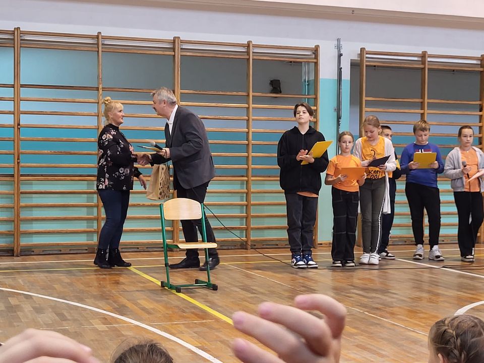 Dnia 31 października na krótkim apelu pożegnaliśmy naszą sekretarkę panią Justynę Mojsiewicz. Pan dyrektor serdecznie podziękował jej za pracę w sekretariacie szkolnym.