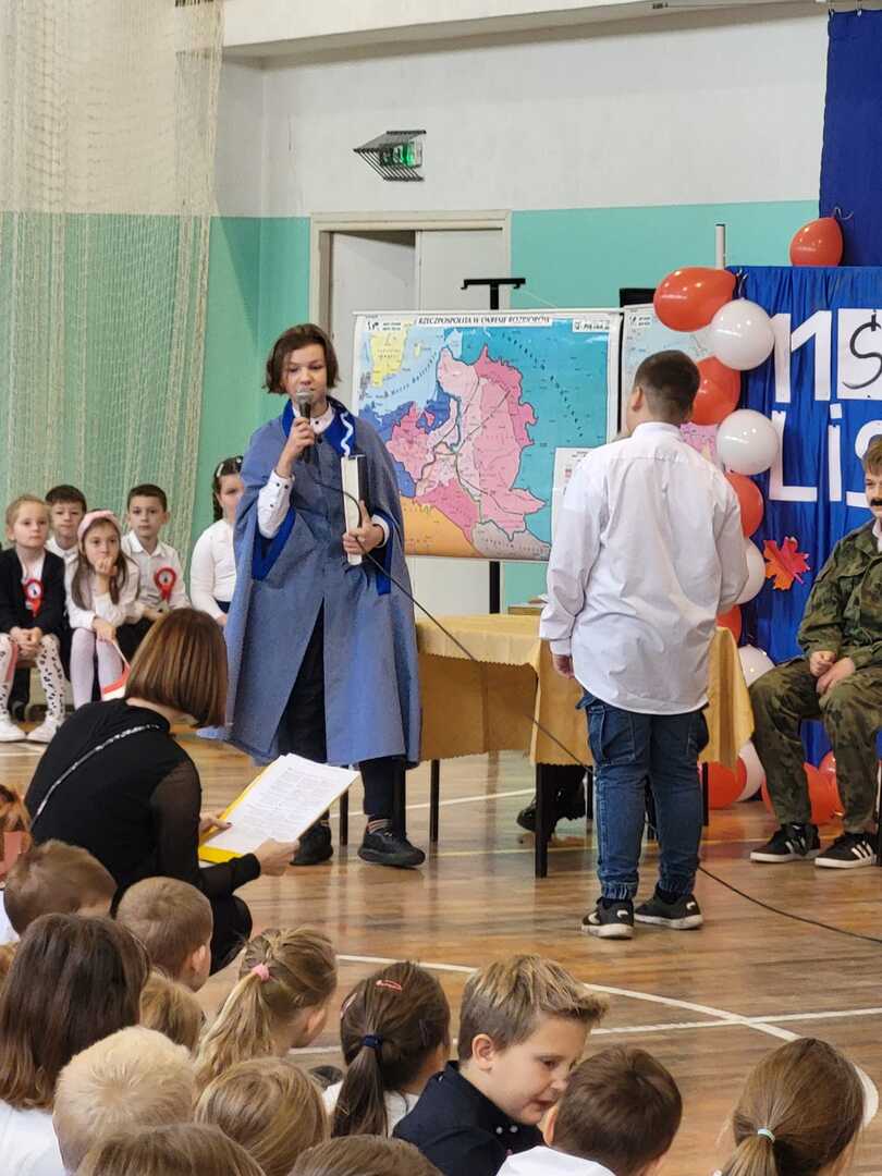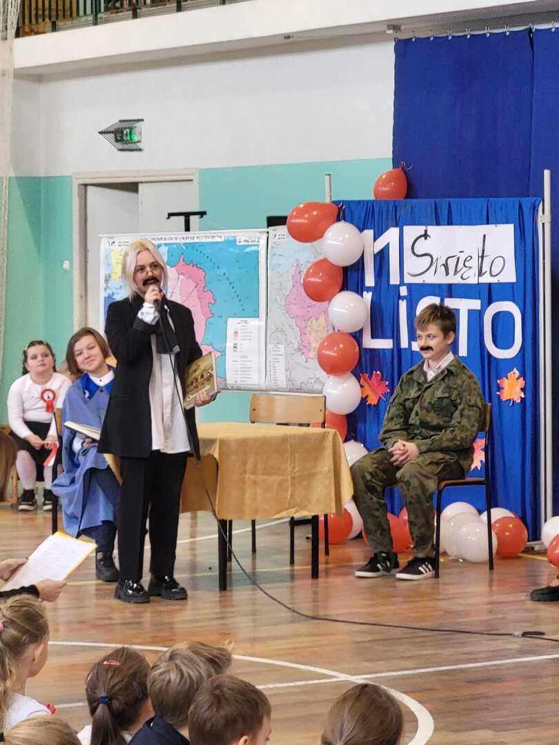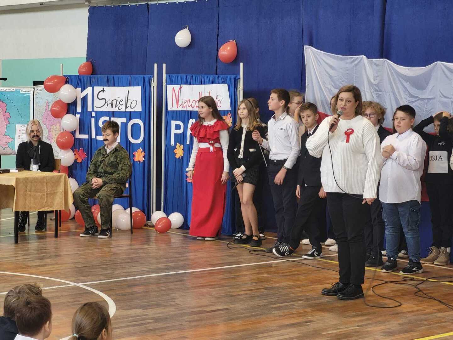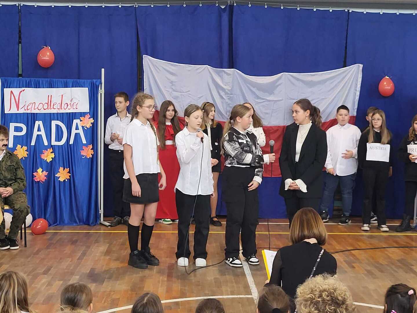 Dnia 10 listopada w naszej szkole odbył się uroczysty apel z okazji Święta Niepodległości zorganizowany przez panie Karolinę Garską i Barbarę Rokitę. Dekoracje przygotowały panie Magdalena Fraszkiewicz i Katarzyna Murdzia.