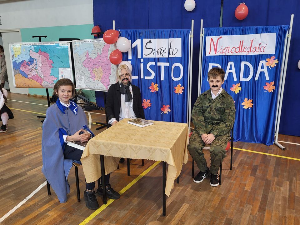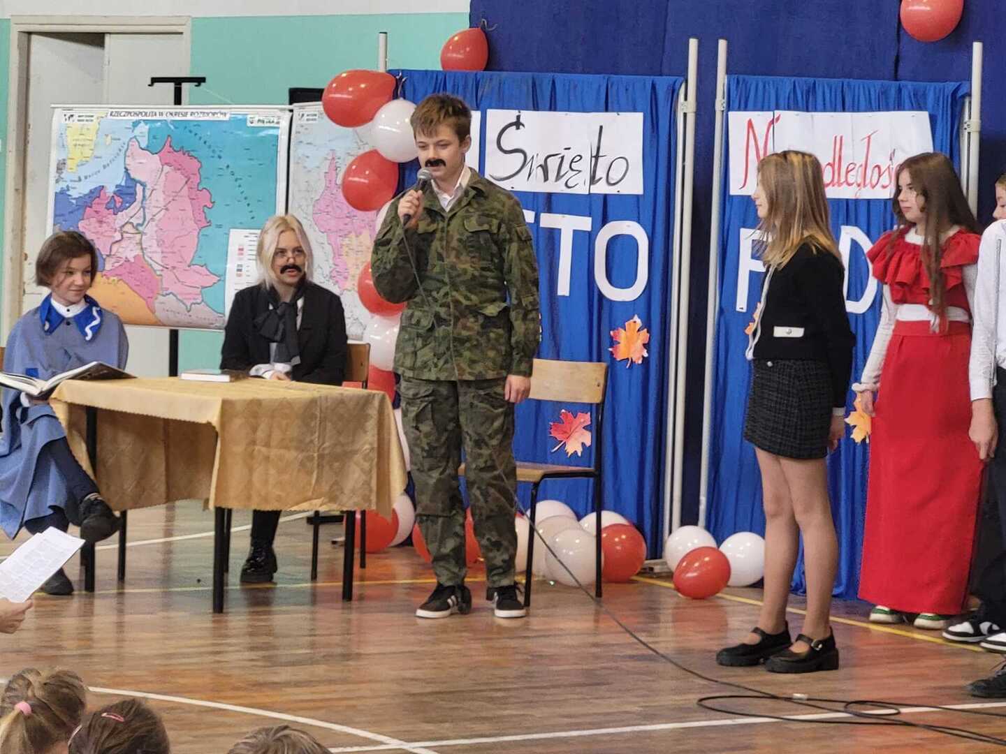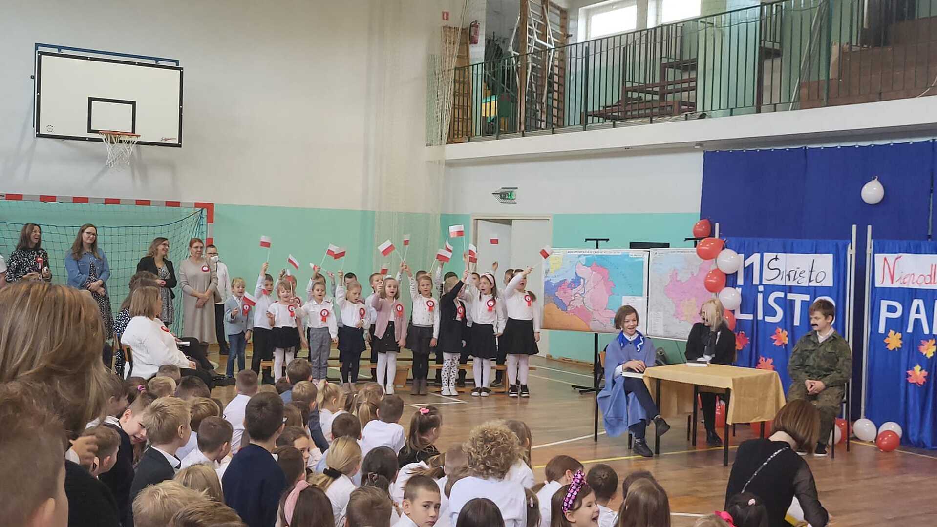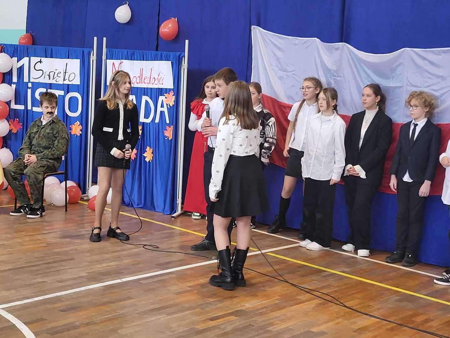 Dnia 10 listopada w naszej szkole odbył się uroczysty apel z okazji Święta Niepodległości zorganizowany przez panie Karolinę Garską i Barbarę Rokitę. Dekoracje przygotowały panie Magdalena Fraszkiewicz i Katarzyna Murdzia.