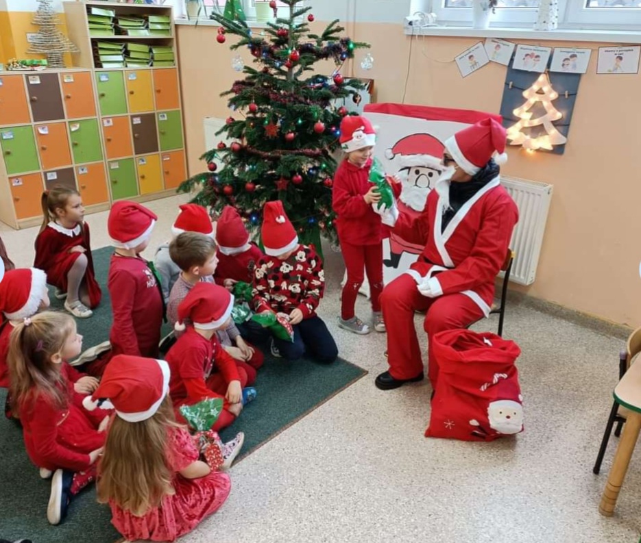 Natomiast nasze maluchy, jak zwykle - chętne do zabawy hucznie świętowały Mikołajki. Klasy już udekorowane - stroiki i choinki, magia świąt coraz bliżej, no i oczywiście do bardzo grzecznych dzieci przybył Mikołaj.