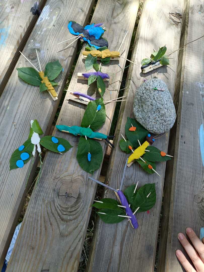 Pani Joanna przygotowała dla dzieci warsztaty pod chmurką o motylach. Najpierw poznaliśmy etapy rozwoju motyli, a następnie tworzyliśmy swoje kolorowe motyle z wykorzystaniem surowców naturalnych. Powstały niezłe cudeńka.