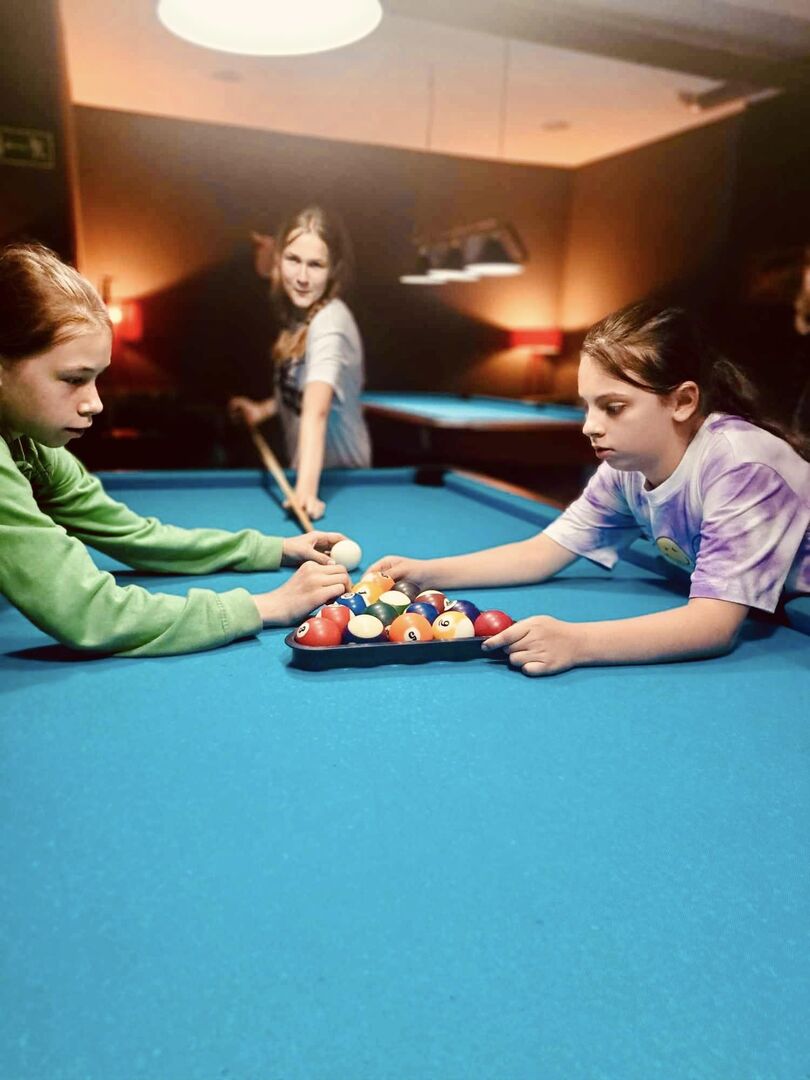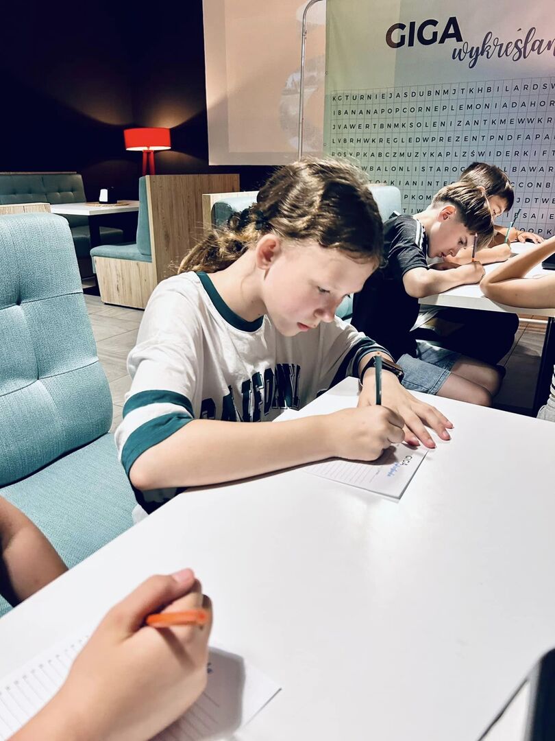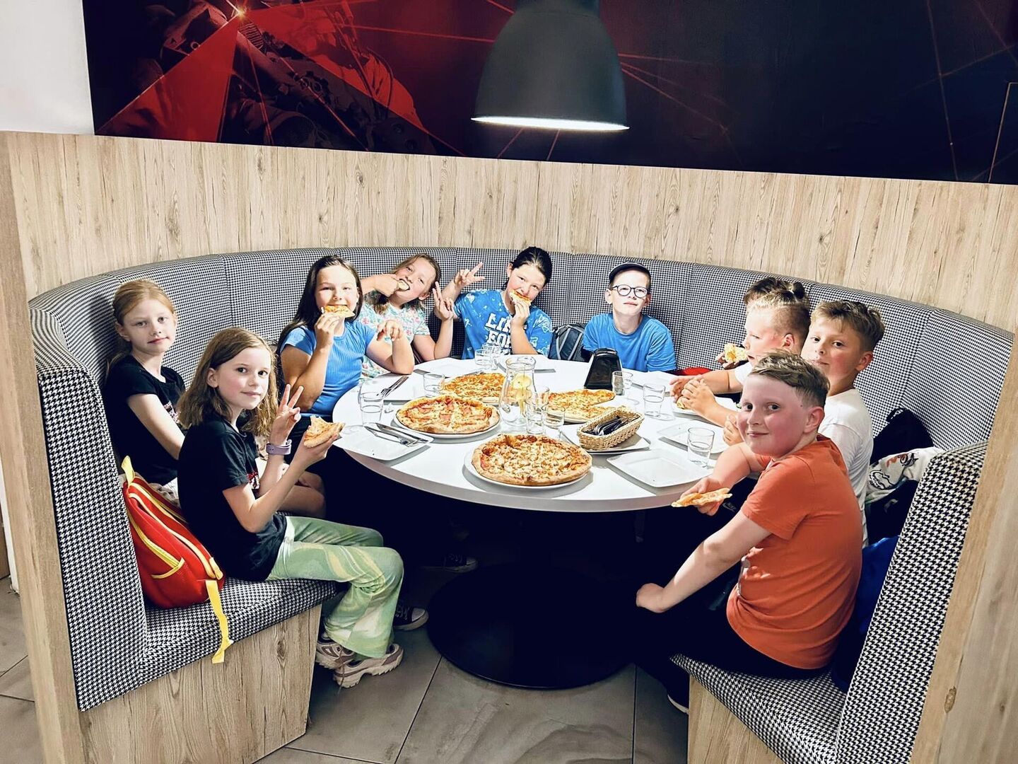 Uczniowie spędzili czas na świeżym powietrzu, przekonując się ile znaczy praca zespołowa, udaliśmy się również na słodkie przekąski a następnie dzieci zagrały w kręgle i bilard a także zmierzyły się z wielką wykreślanką.