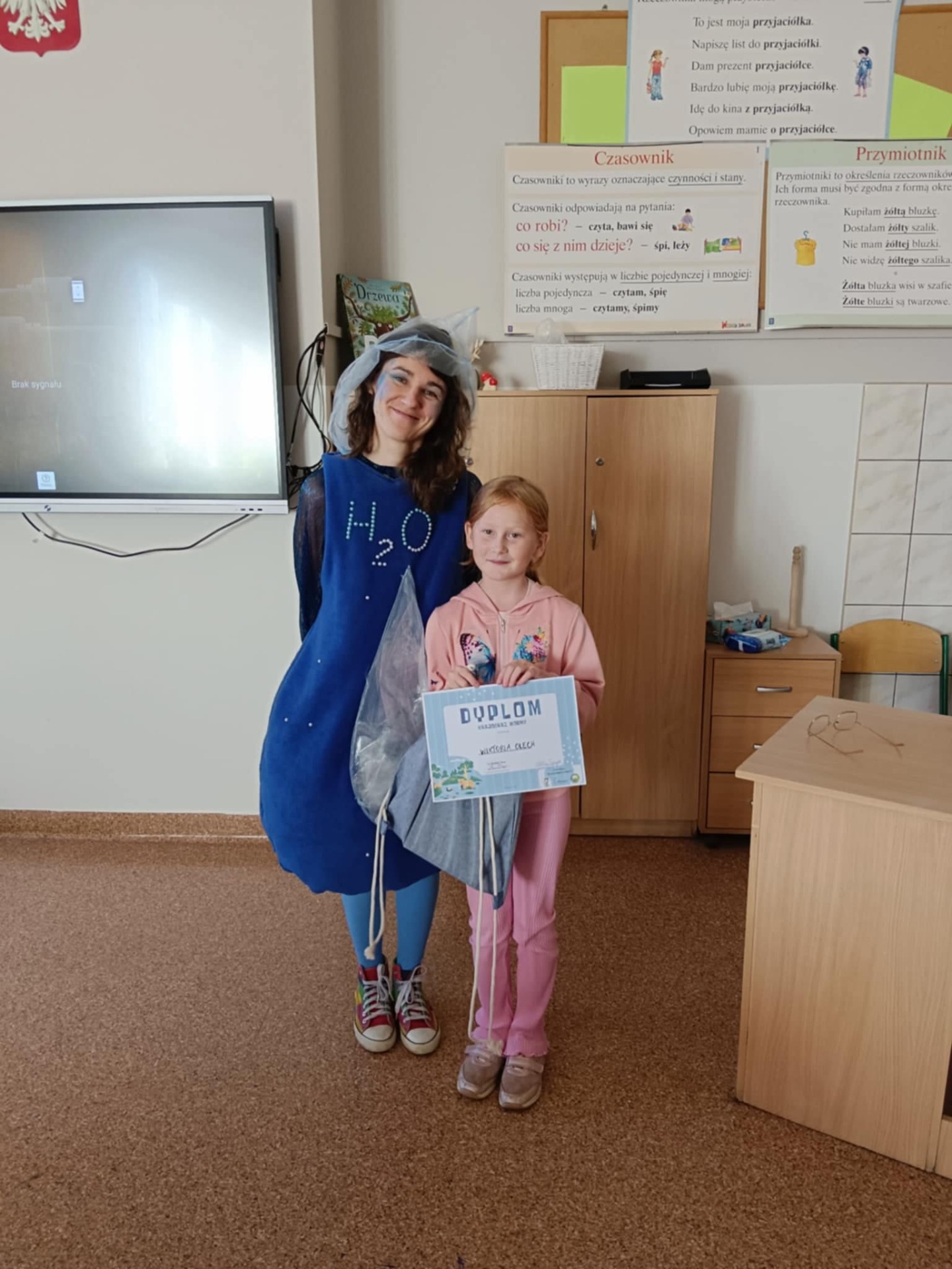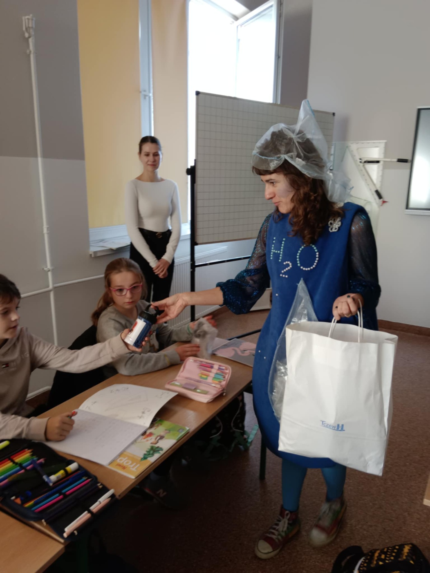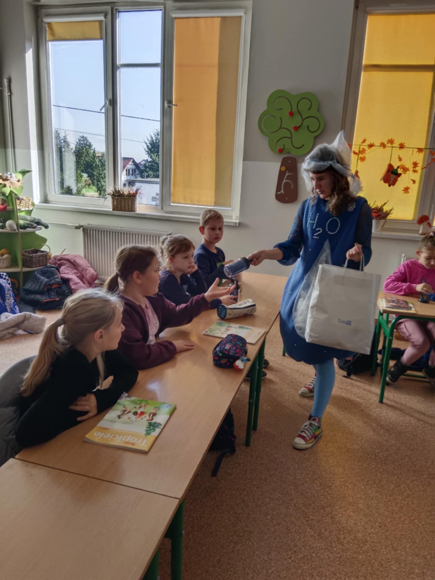 24 października odwiedziła nas Kropelka - Pani prezes Fundacji Wartości i Wodonerzy - Strażnicy Wody i wewnętrznej Przyrody. Złożyła podziękowania naszym zdolnym artystom i wręczyła upominki.