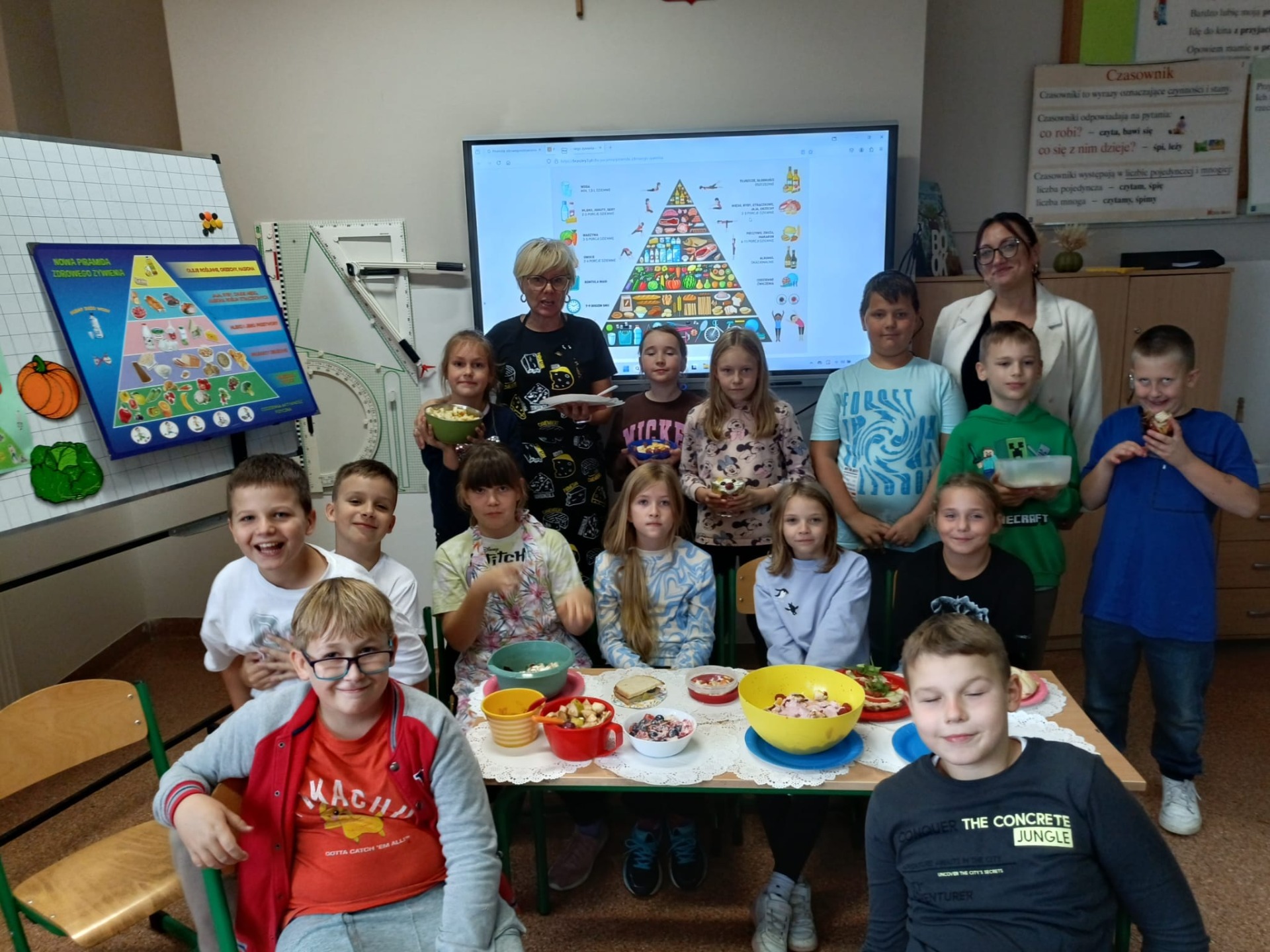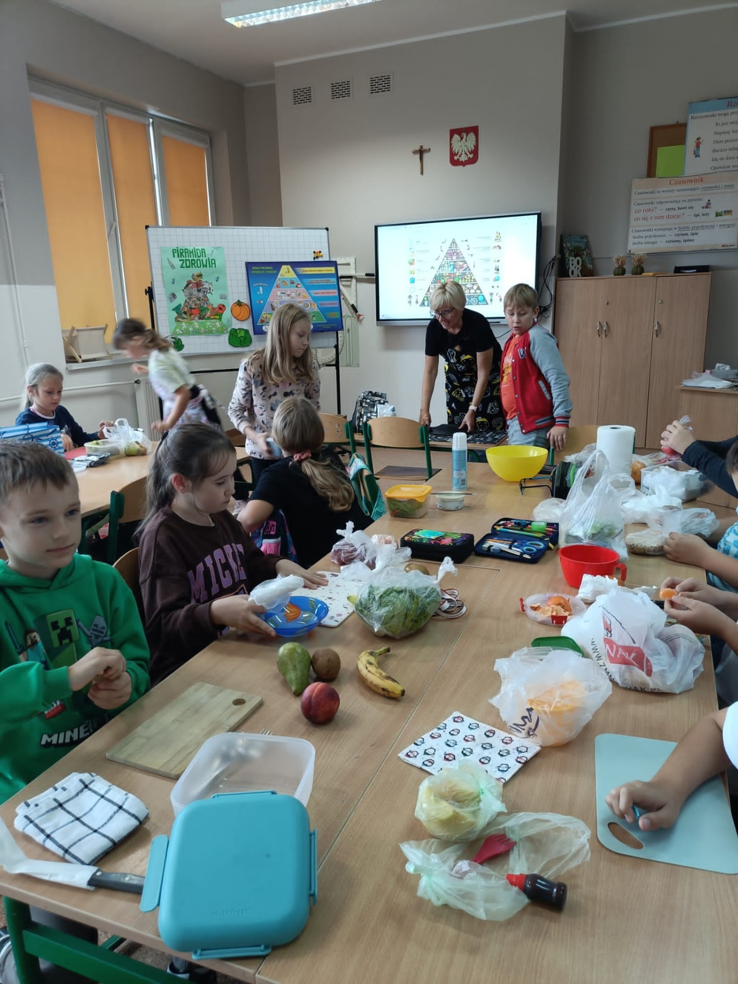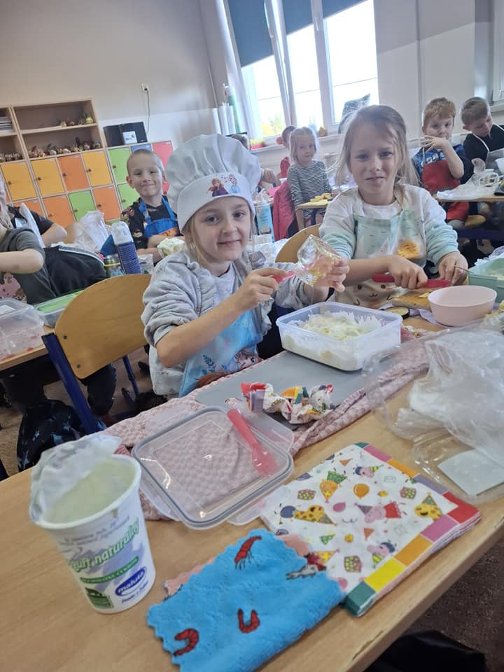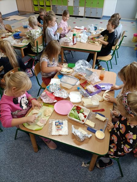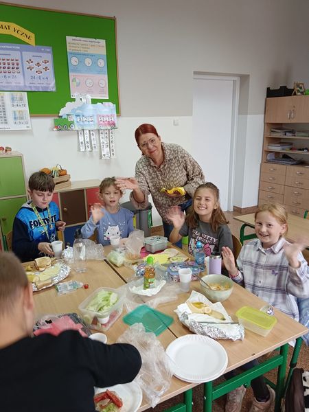 W ramach tej akcji nauczycielki klas 0-III zorganizowały uczniom Dzień Zdrowego Śniadania. Dzieci robiły sałatki i kolorowe zabawne kanapki. Zapoznały się przy tym z Piramidą Żywienia.