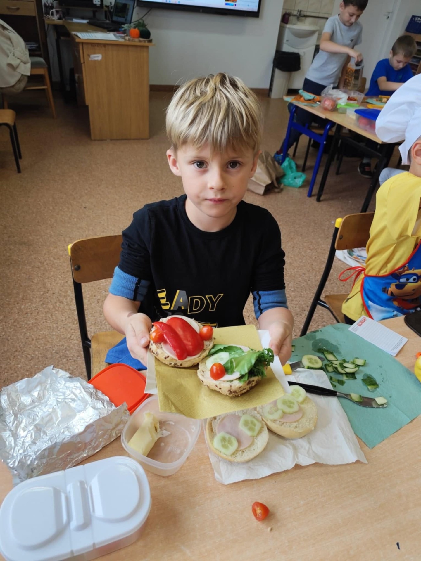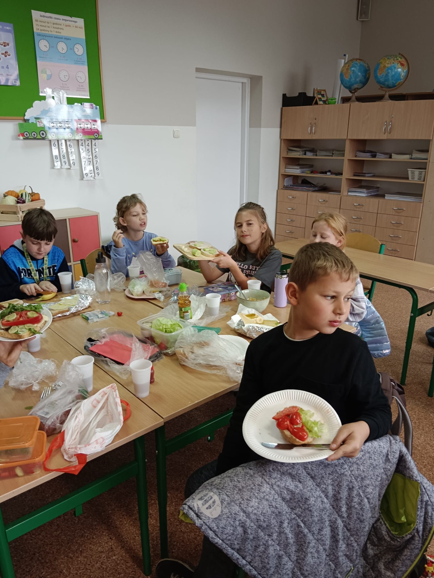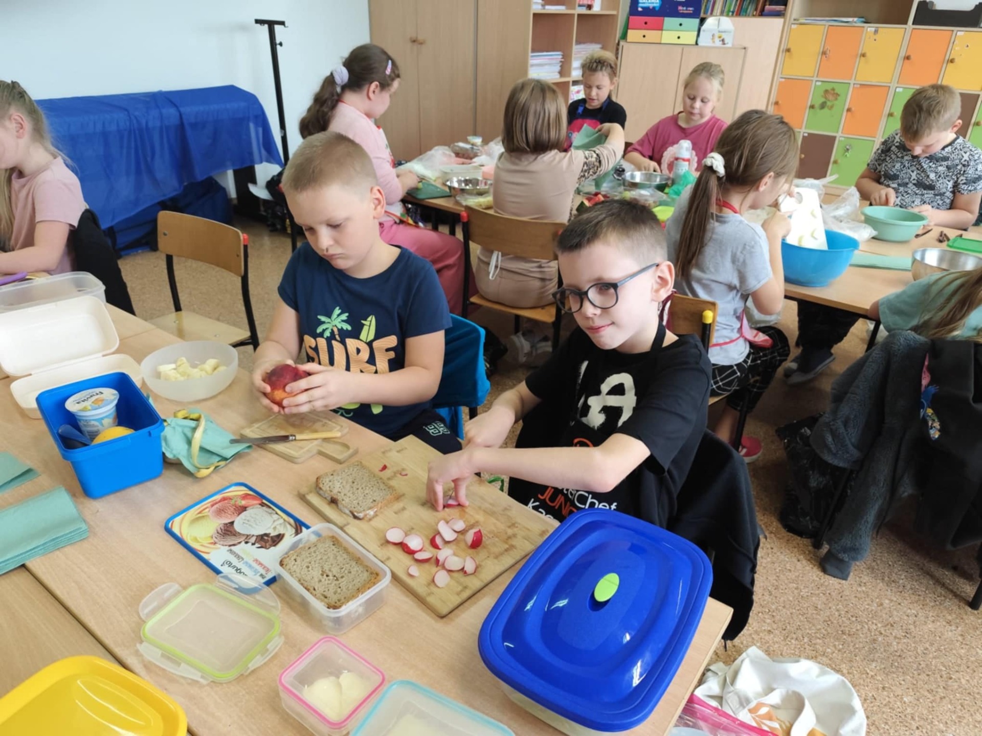W ramach tej akcji nauczycielki klas 0-III zorganizowały uczniom Dzień Zdrowego Śniadania. Dzieci robiły sałatki i kolorowe zabawne kanapki. Zapoznały się przy tym z Piramidą Żywienia.