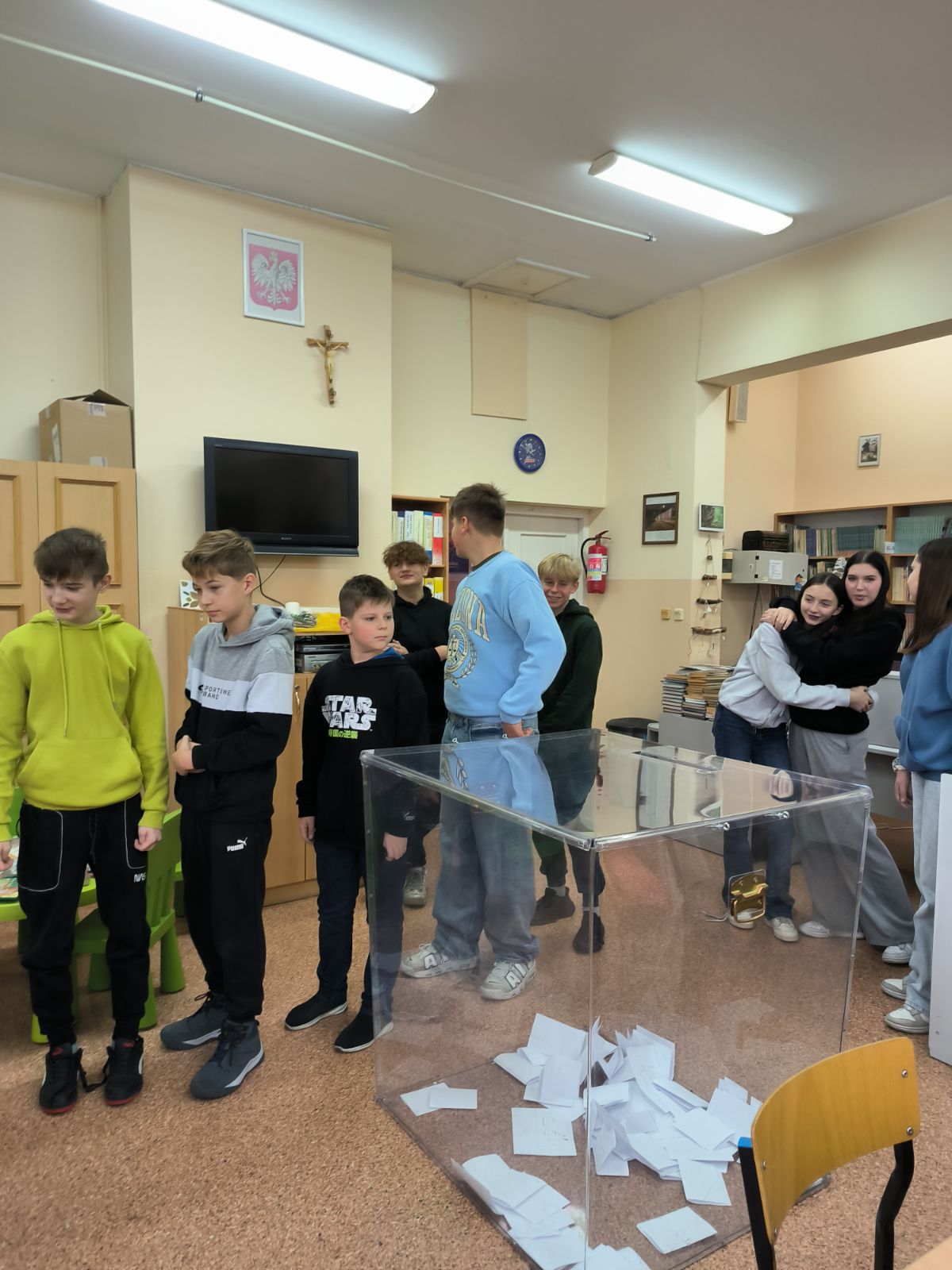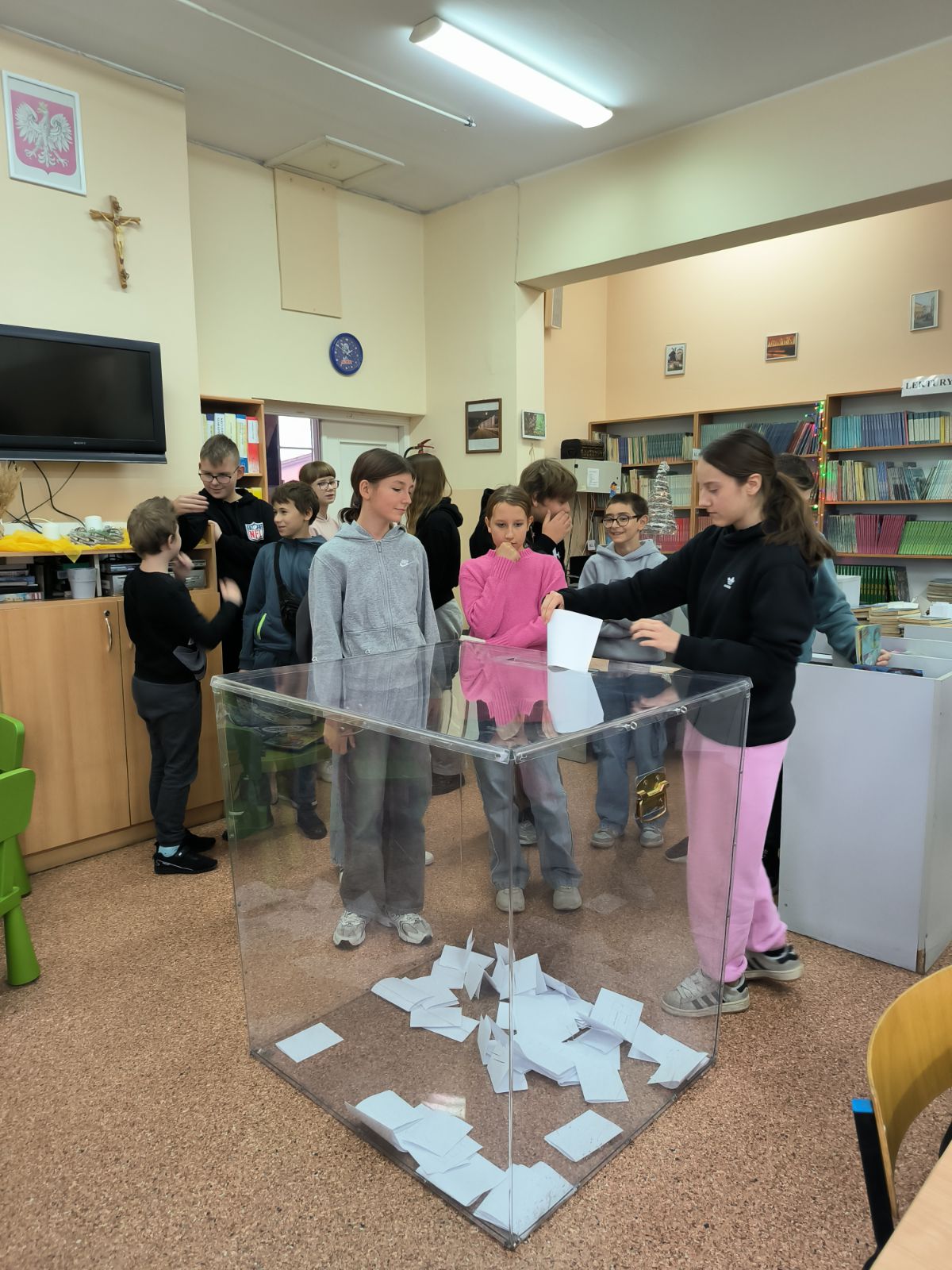 Dziękujemy także Vanessie Mehlberg i Monice Pawłuszek z klasy 6a za koordynowanie przebiegu wyborów.