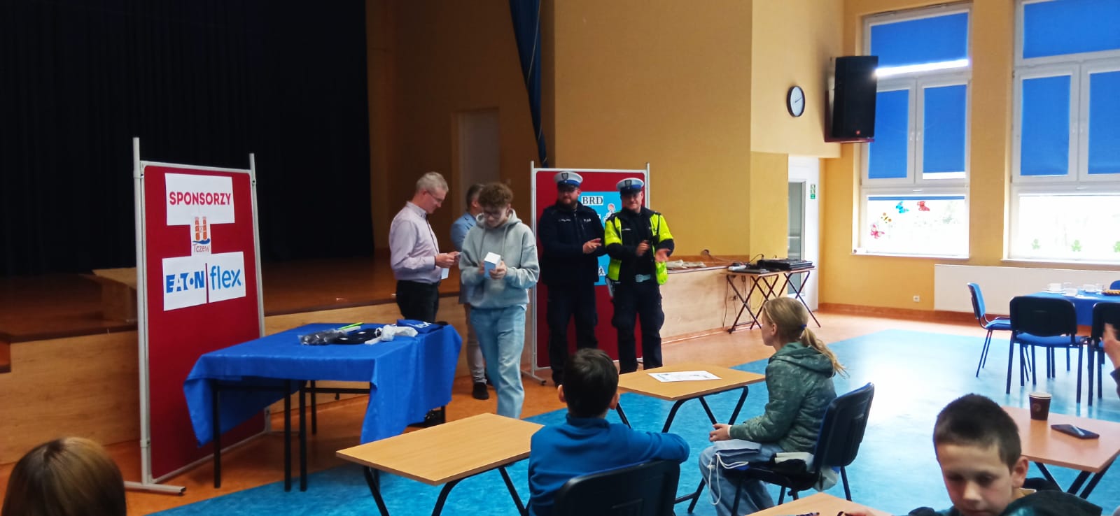 W poniedziałek 7 kwietnia w Szkole Podstawowej nr 1 odbył się Turniej Bezpieczeństwa w Ruchu Drogowym. Najpierw wszyscy uczestnicy Turnieju odpowiadali na 20 pytań testowych związanych z bezpieczeństwem w ruchu drogowym i 10 pytań testowych dotyczących skrzyżowań dróg oraz części praktycznej związanej z udzielaniem pierwszej pomocy przedmedycznej. Następnie uczestnicy Turnieju musieli wykazać się umiejętnościami praktycznymi jazdy na rowerze, tzn. musieli pokonać tor przeszkód i wykazać się wiedzą i umiejętnościami w miasteczku ruchu drogowego.