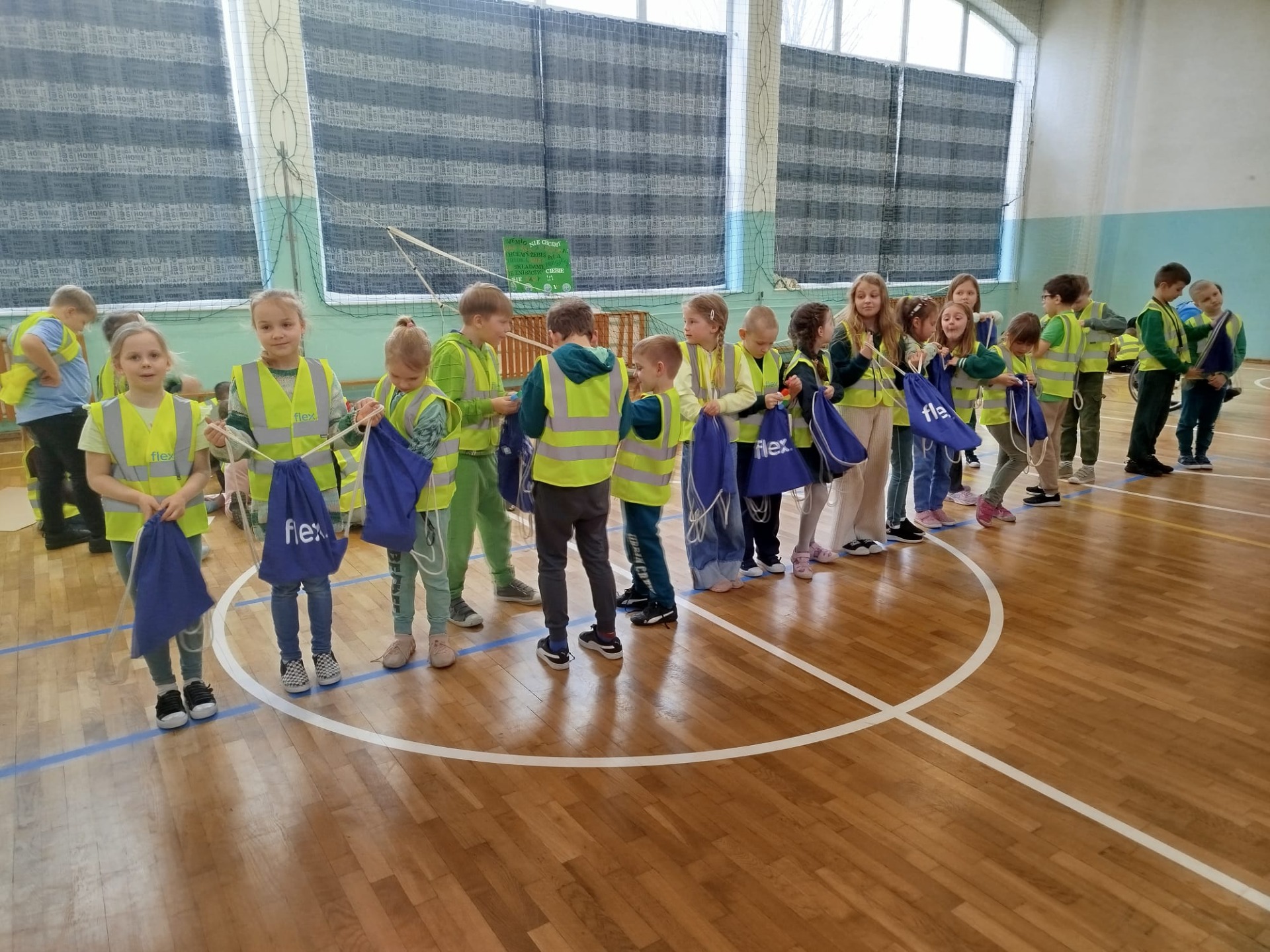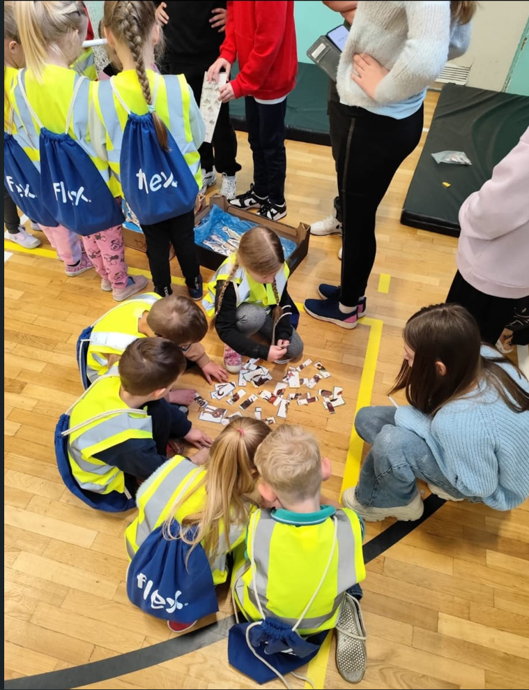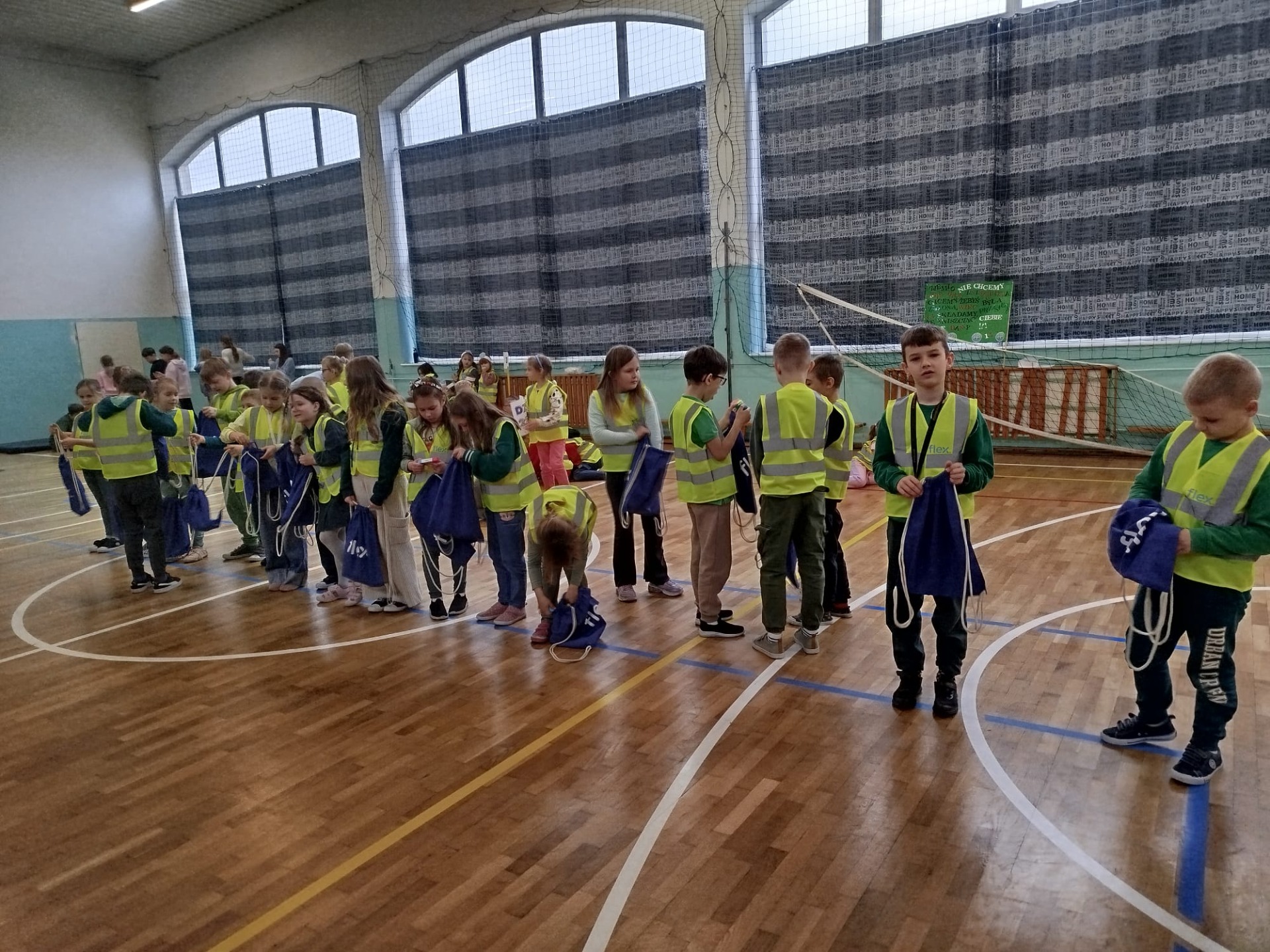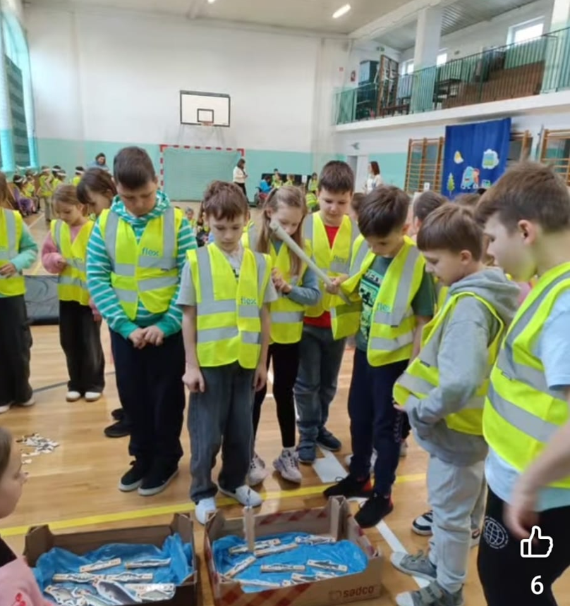 Część działań, z powodu kaptyśnej pogody, odbyła się na sali gimnastycznej. Tam pan Czarek przekazał ciekawostki o rybach, pani Donata o roślinach, a pod czujnym okiem pani Natalii wykonywaliśmy ekologiczne puzzle kolorowanki i podjęliśmy zadania z zakresu bezpieczeństwa z Komendą Powiatową Policji w Tczewie. Nie zabrakło dobrej zabawy przy fotobudkach, a na koniec otrzymaliśmy upominki od firmy FlexPoland.