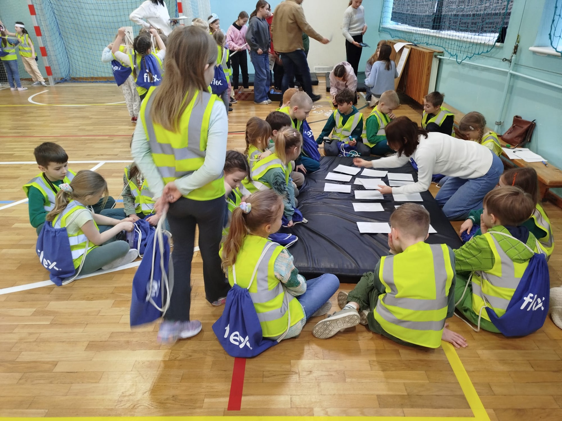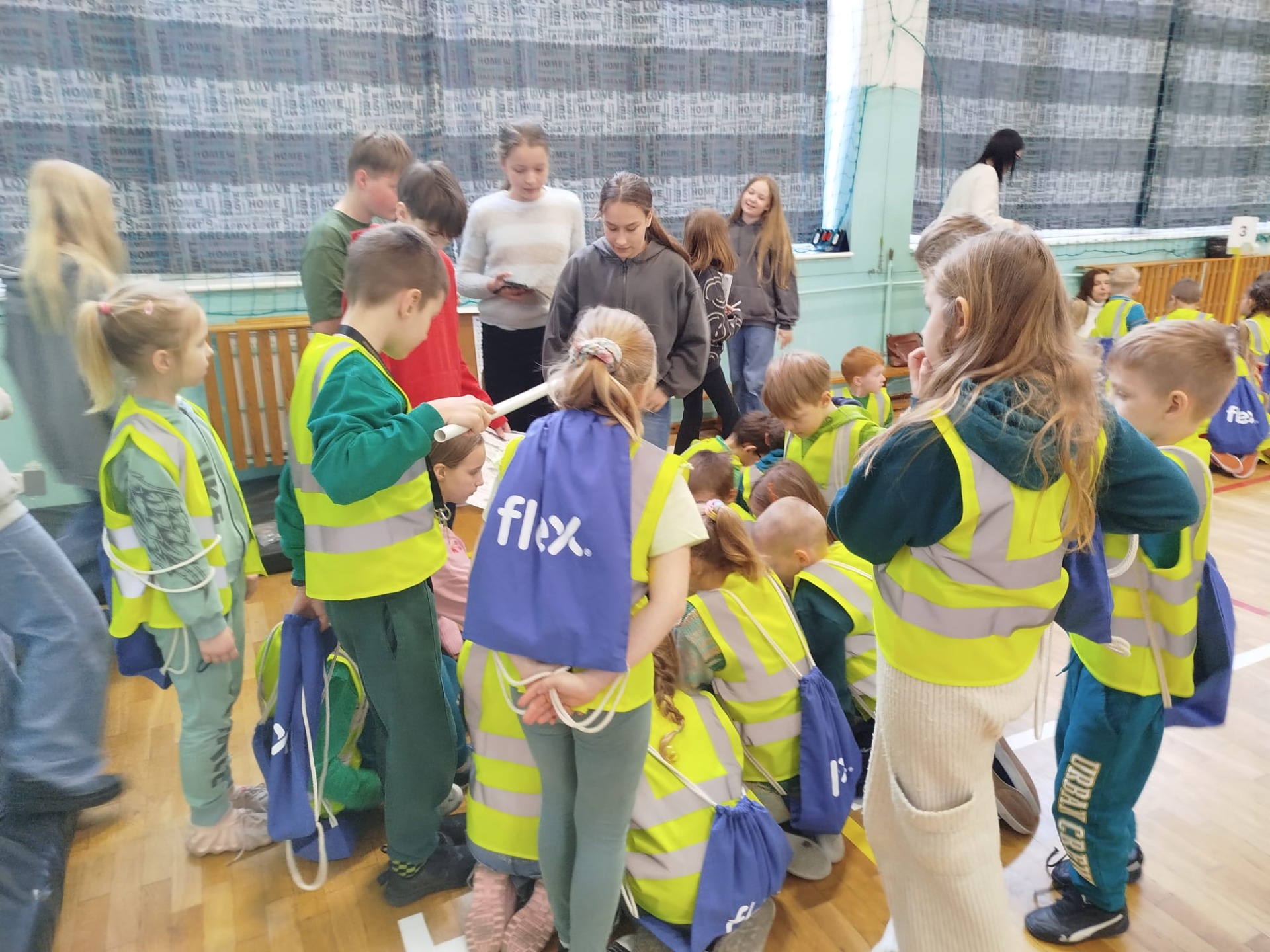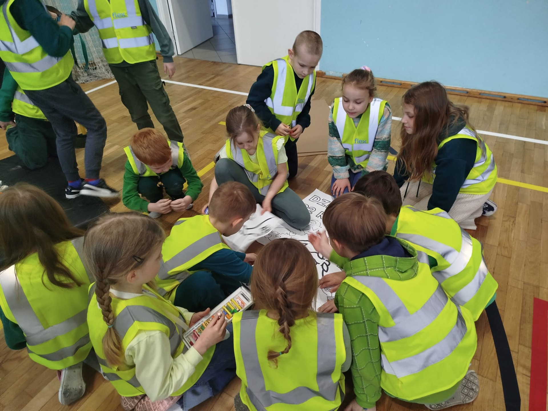 Część działań, z powodu kaptyśnej pogody, odbyła się na sali gimnastycznej. Tam pan Czarek przekazał ciekawostki o rybach, pani Donata o roślinach, a pod czujnym okiem pani Natalii wykonywaliśmy ekologiczne puzzle kolorowanki i podjęliśmy zadania z zakresu bezpieczeństwa z Komendą Powiatową Policji w Tczewie. Nie zabrakło dobrej zabawy przy fotobudkach, a na koniec otrzymaliśmy upominki od firmy FlexPoland.