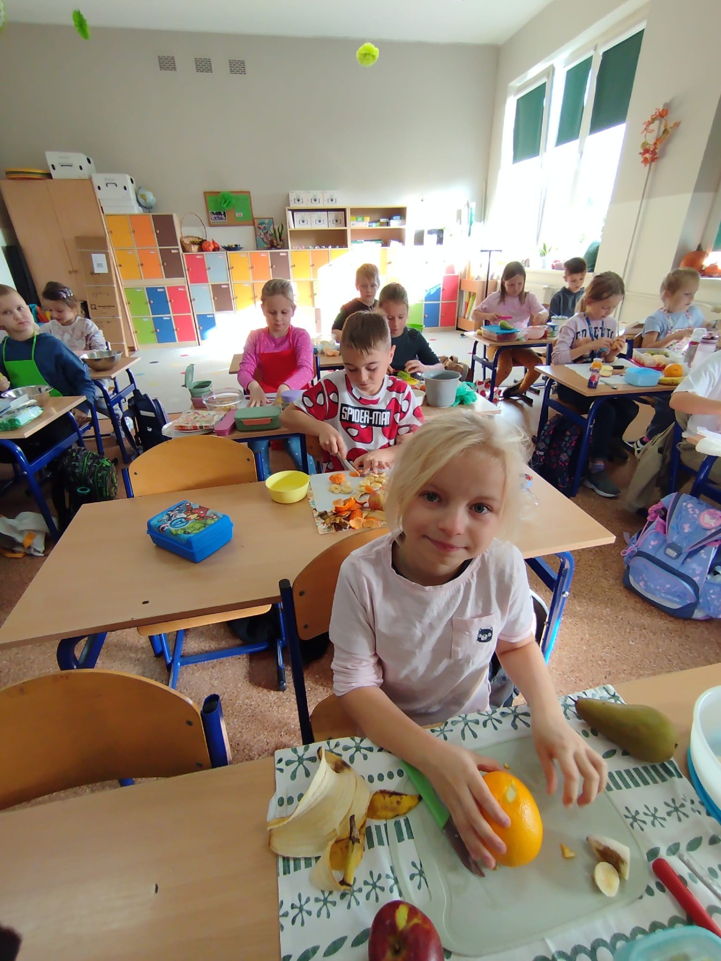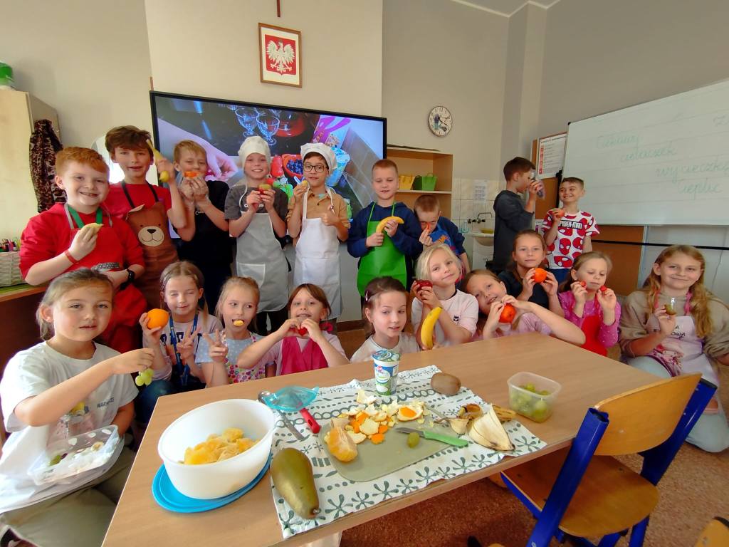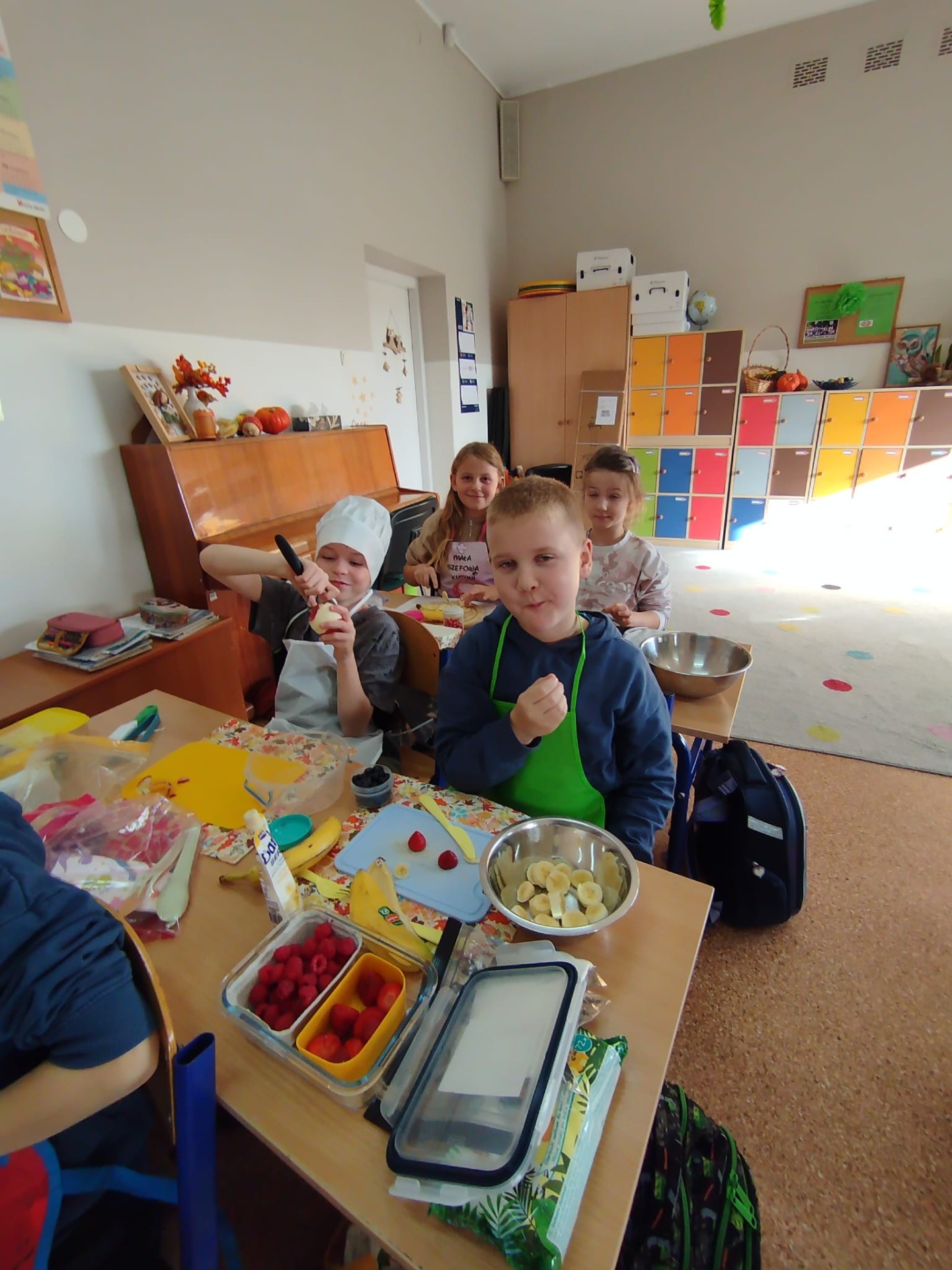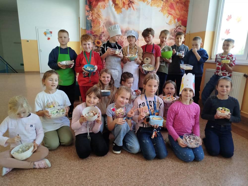 Klasa 2b przygotowała sałatki z sezonowych owoców i warzyw. Było smacznie, po prostu pycha.