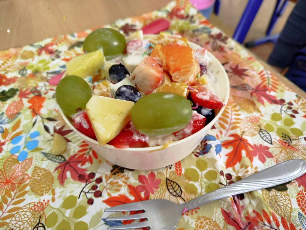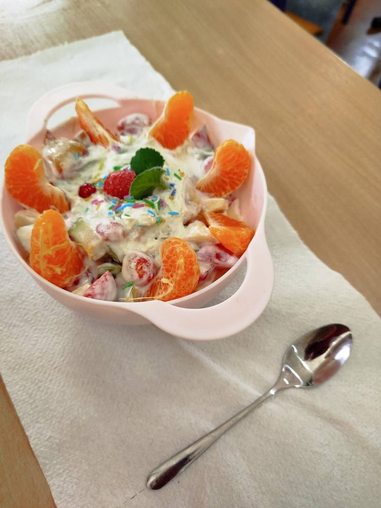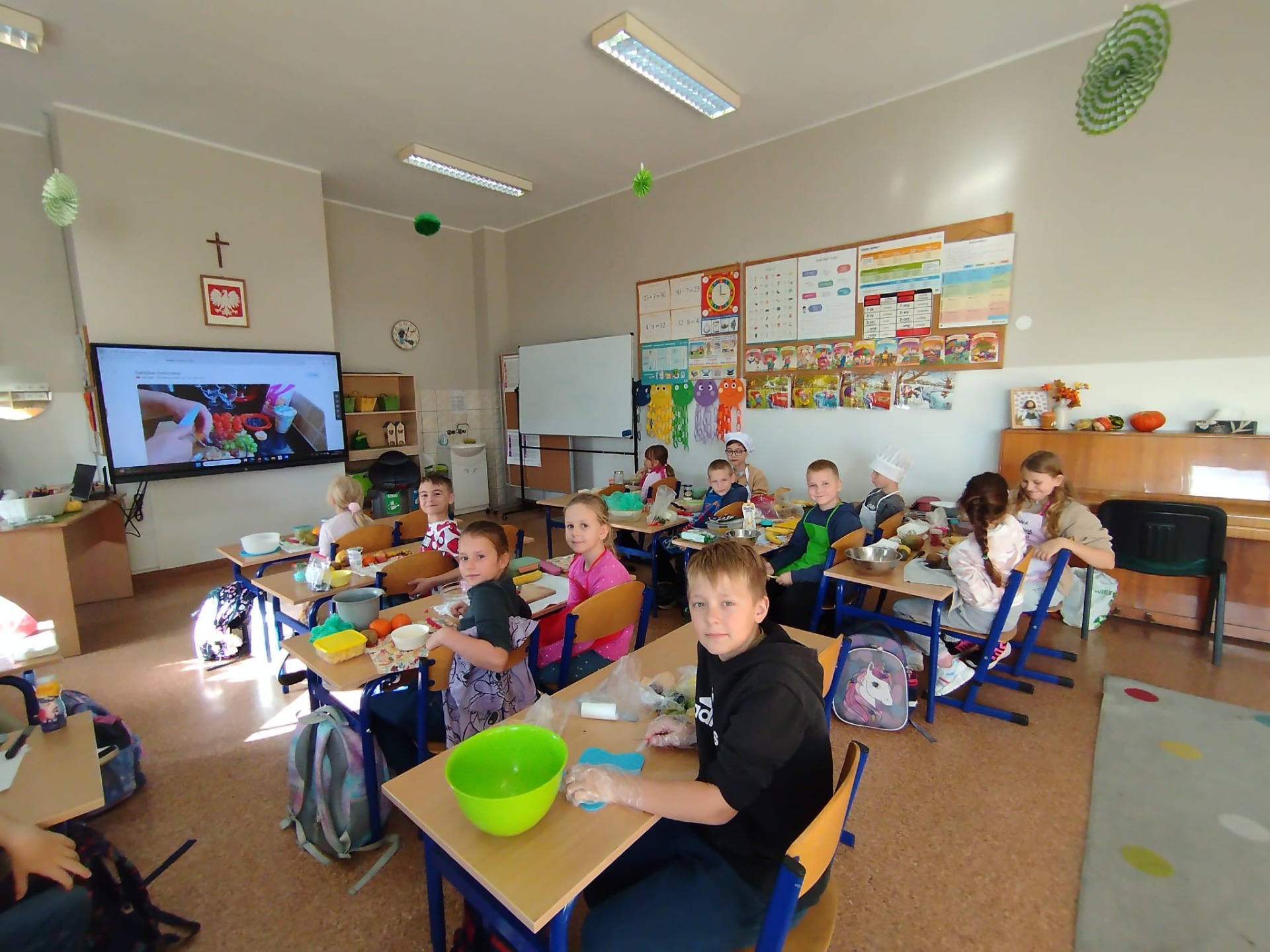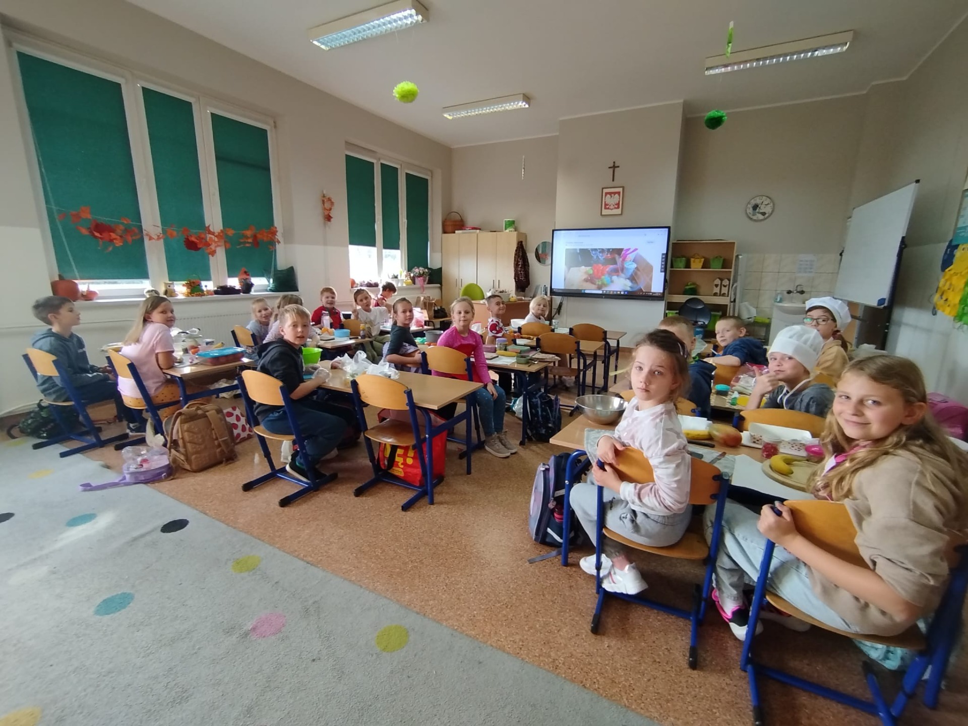 Klasa 2b przygotowała sałatki z sezonowych owoców i warzyw. Było smacznie, po prostu pycha.