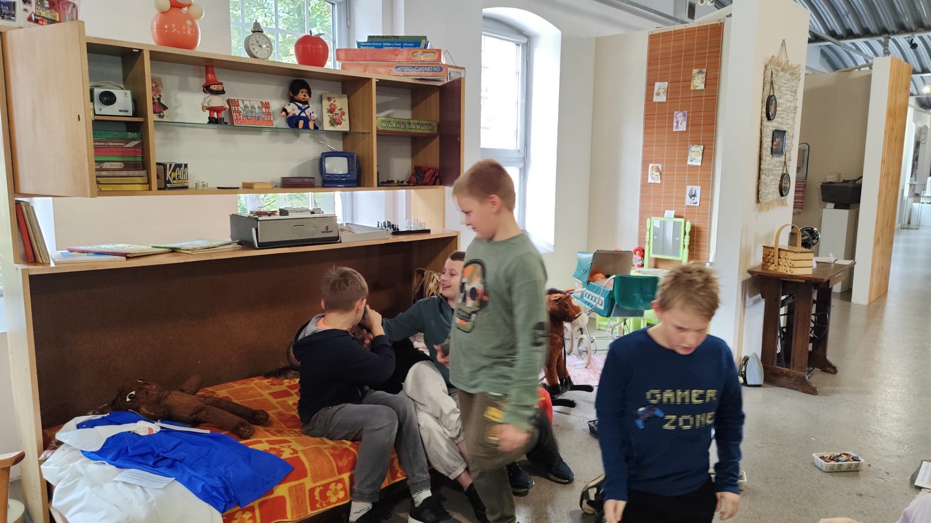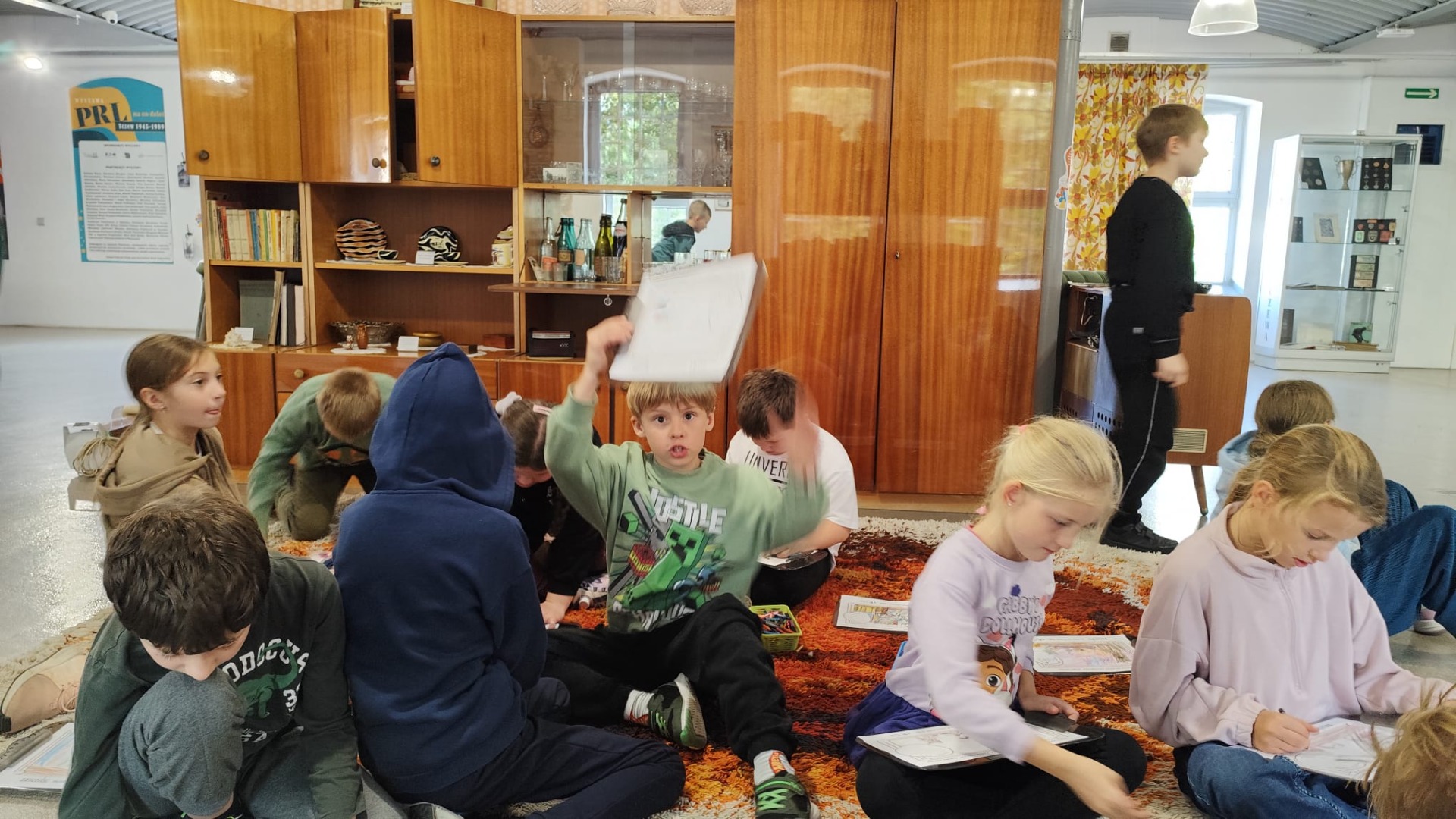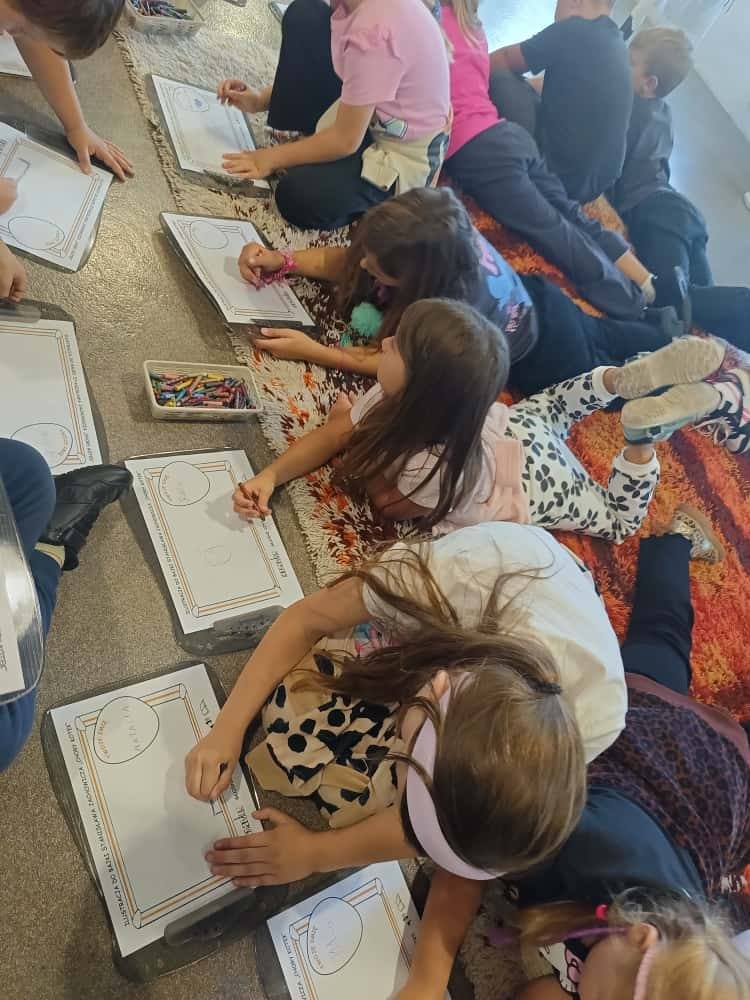 Dzieci zobaczyły, jak wyglądało mieszkanie 40-50 lat temu, dowiedziały się, do czego służyły różne przedmioty codziennego użytku, a w pokoju gościnnym usłyszały bajki, bajeczki i wierszyki, które czytali ich dziadkowie. Następnie wykonały ilustrację do usłyszanego utworu.
