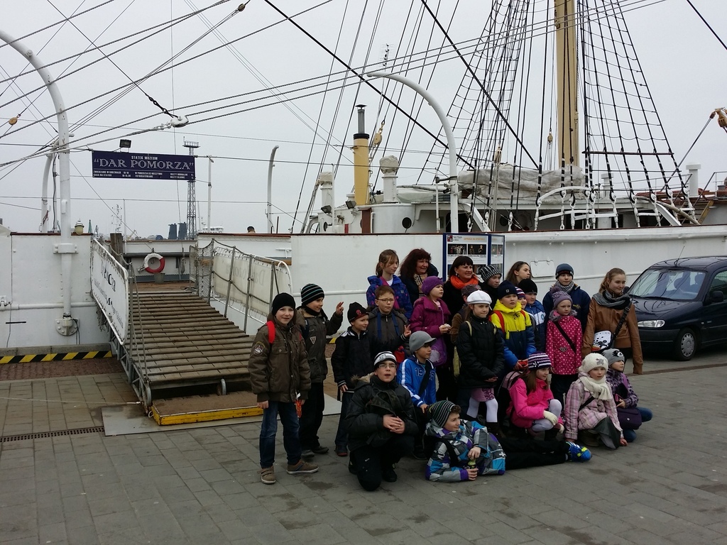 Dnia 5.03.14 nasze Panie zorganizowały dla klas drugich i piątych wyjazd do teatru muzycznego w Gdyni na przedstawienie pt. "Szewczyk Dratewka". Bajka była bardzo ciekawa,pełna kolorów,piosenek,dobrego humoru i tańca.Aktorzy od samego początku witali się z dziecmi,zasiadali w pierwszych rzędach.Bajka jak bajka dobrze się skończyła ,a 55 minut spędzone w teatrze z pewnością nie było stracone.Po teatrze udaliśmy się na pobliski plac zabaw .Widok na Morze Bałtyckie był piękny mimo niezbyt ładnej pogody.Nad brzegiem morza przycumowany był wojenny statek "ORP Błyskawica" oraz" Dar Pomorza". Spacerując brzegiem morza zrobiliśmy sobie kilka pamiątkowych zdjęc.Wycieczkę zaliczamy do udanych.
